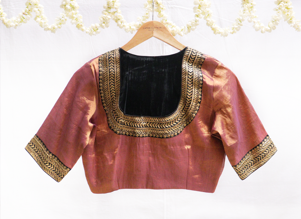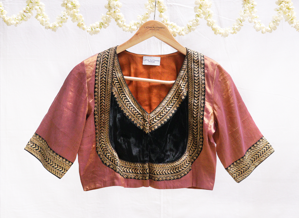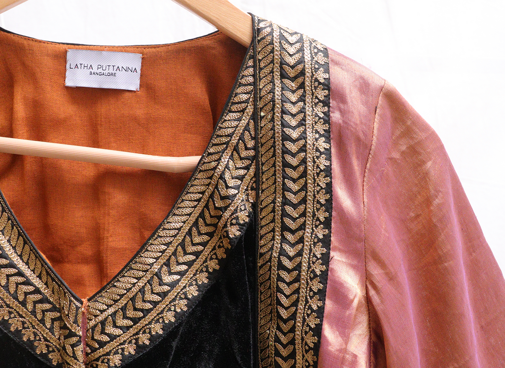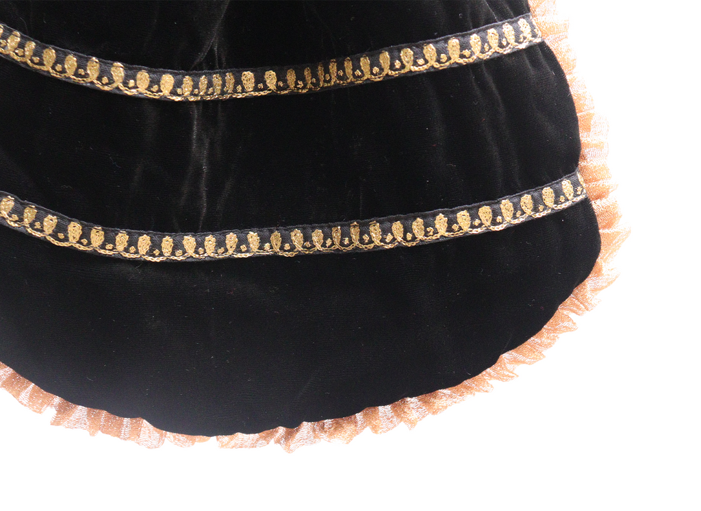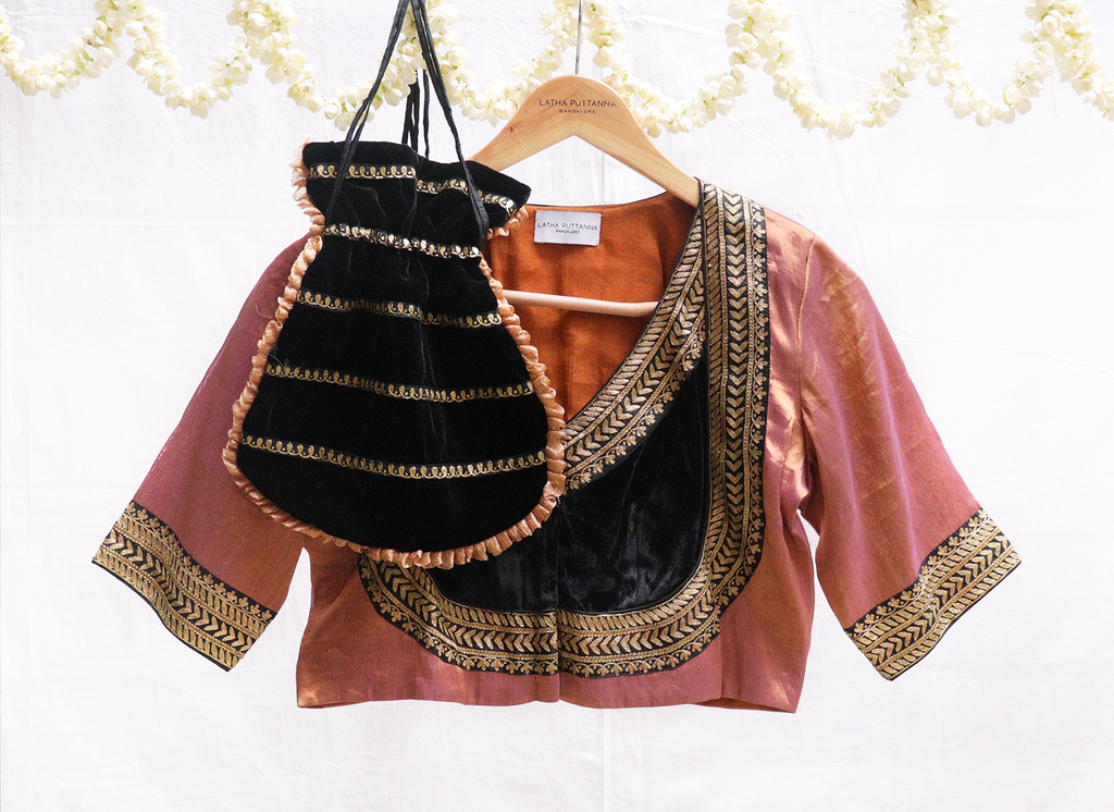 Jet black velvet potli with gold jari embroidery. – Latha Puttanna Online Store