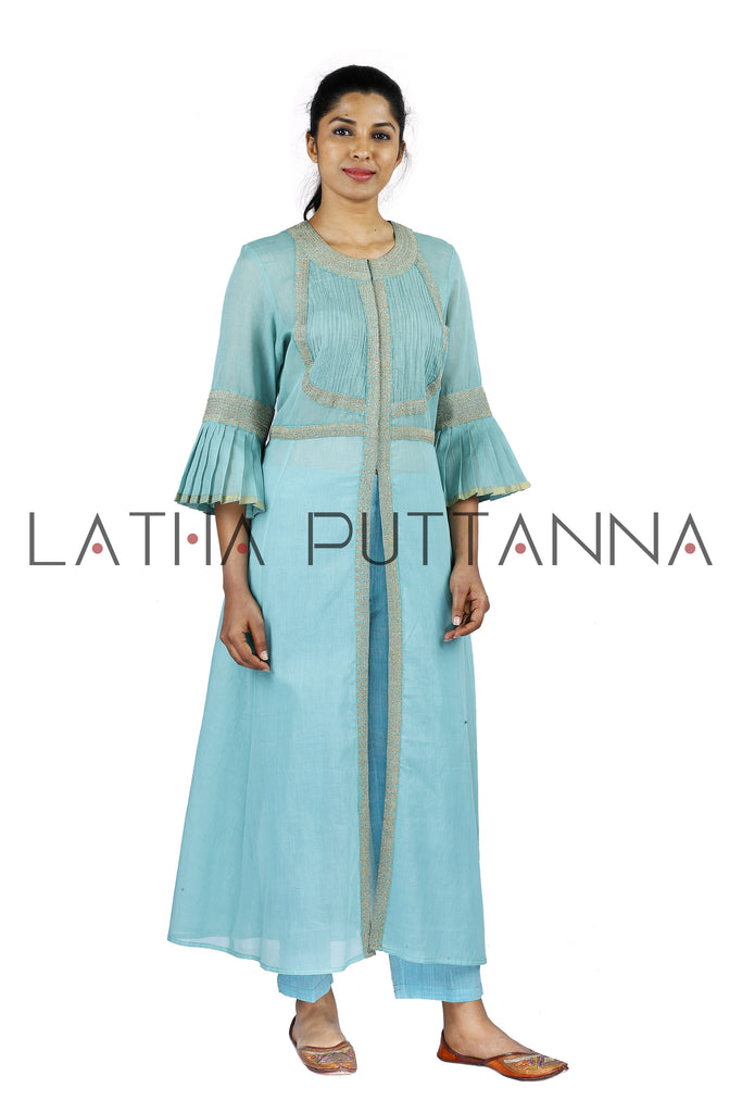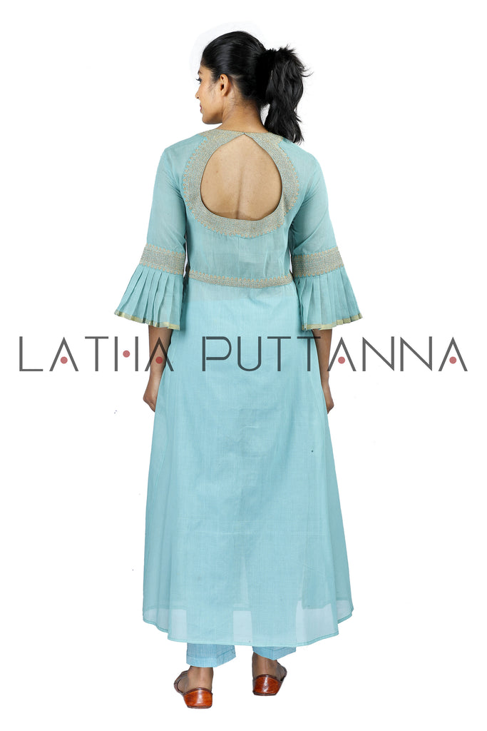 Blue Salwar with gold embroidery – Latha Puttanna Online Store