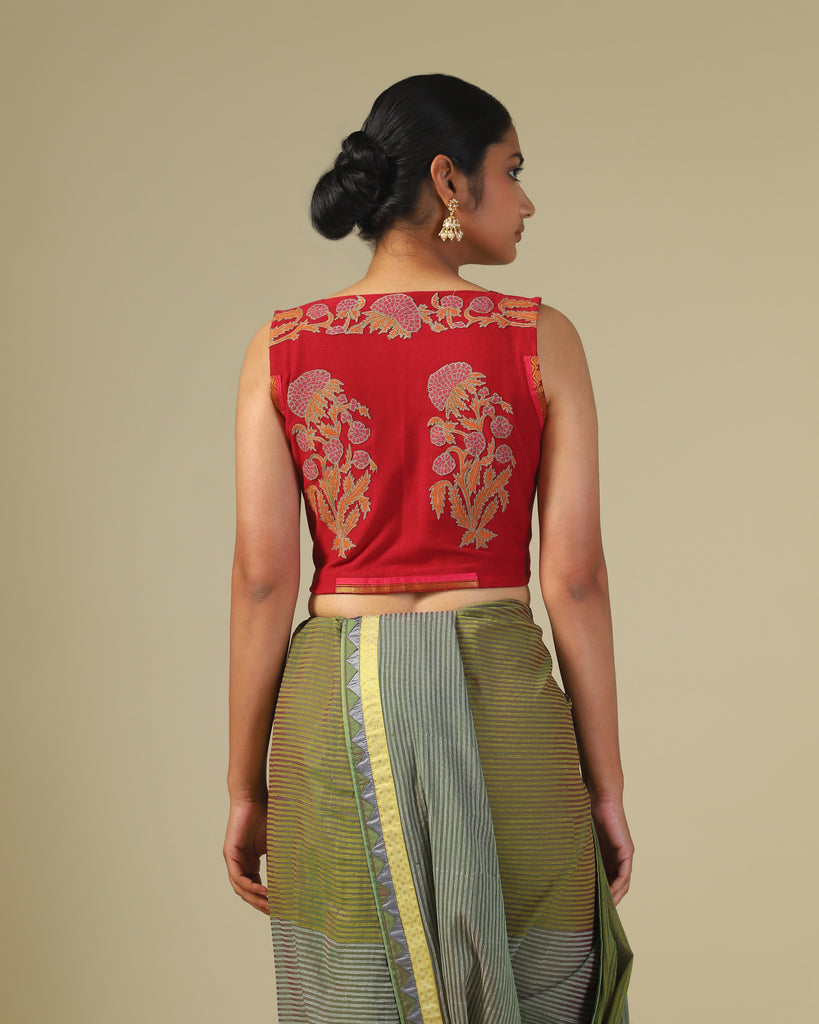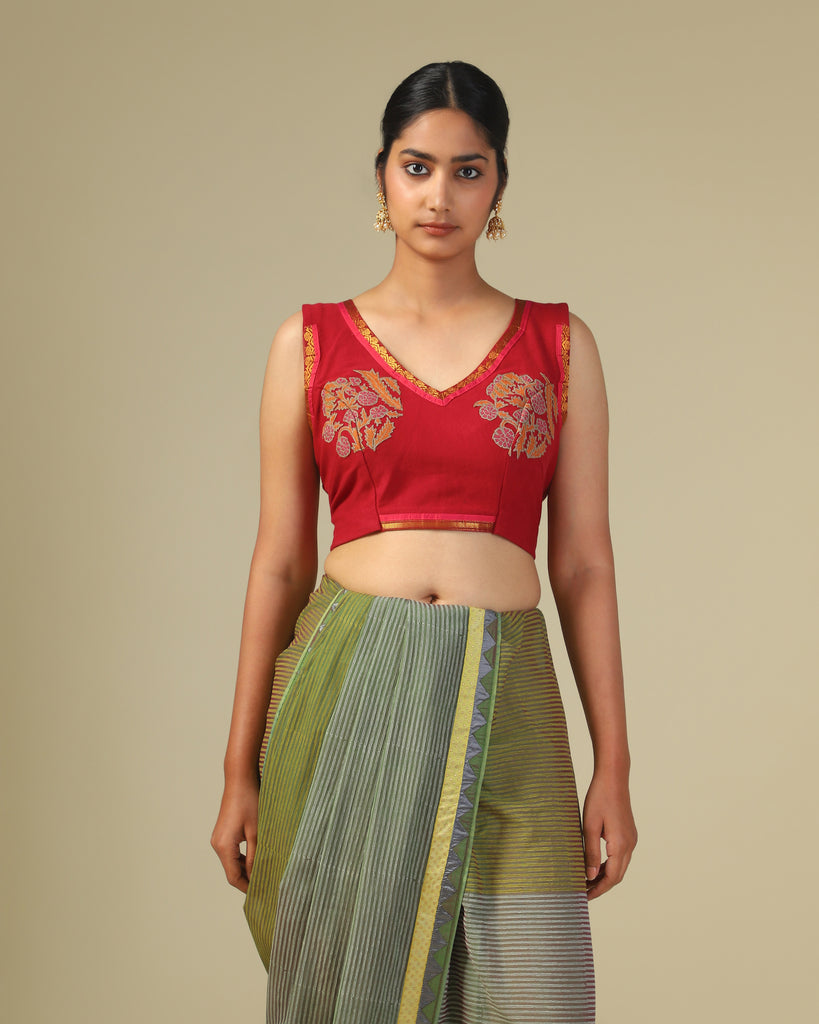 In vibrant Chilli Pepper red, this stretch cotton blouse is adorned with subtle embroidery for a refined finish.