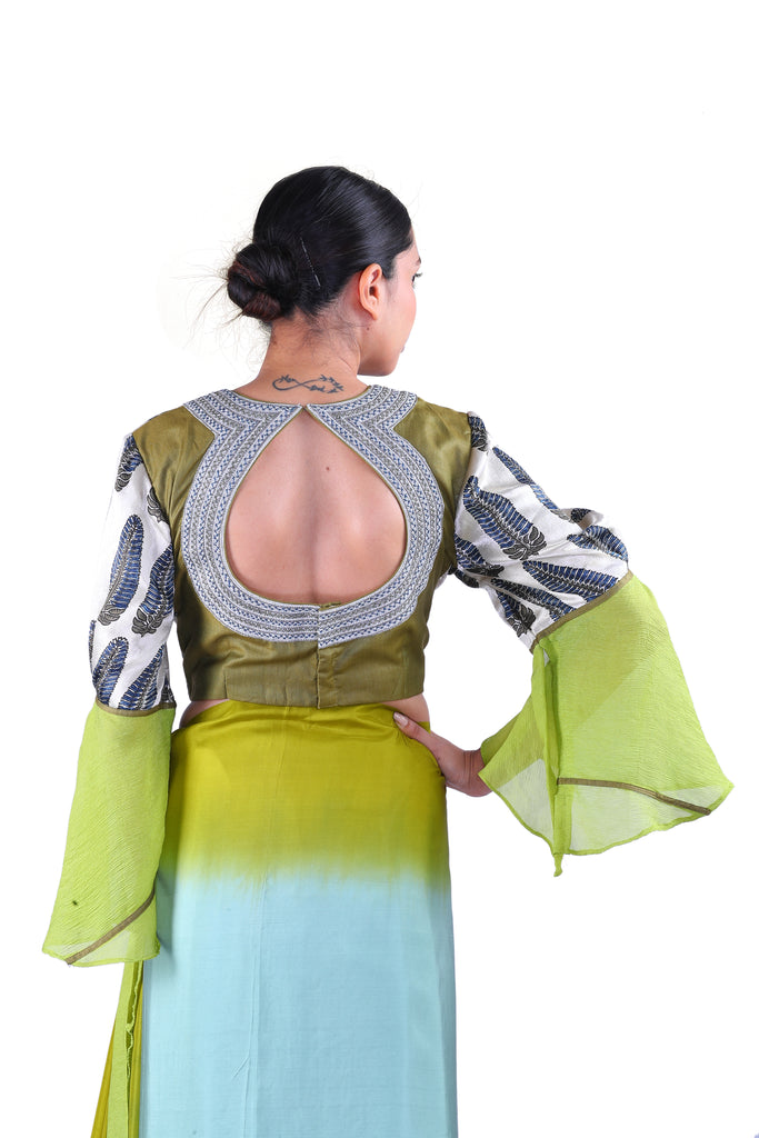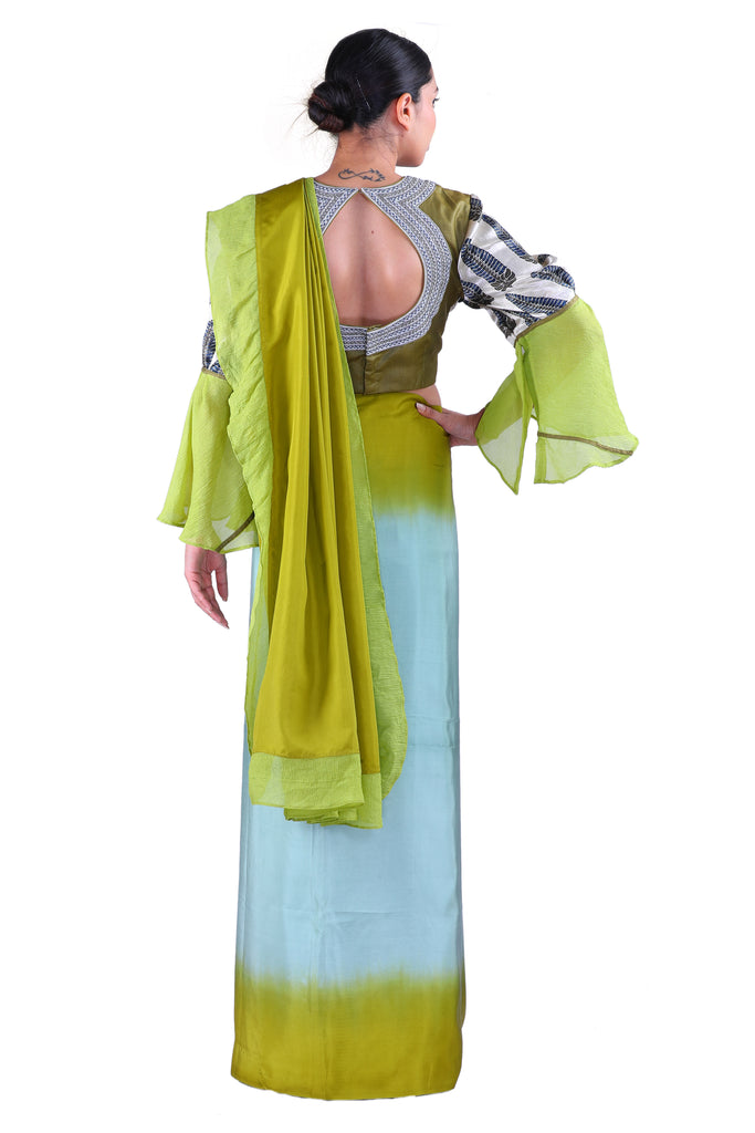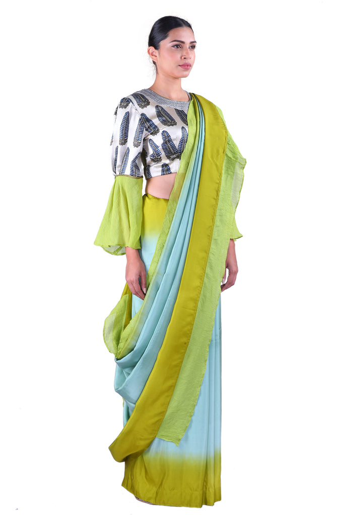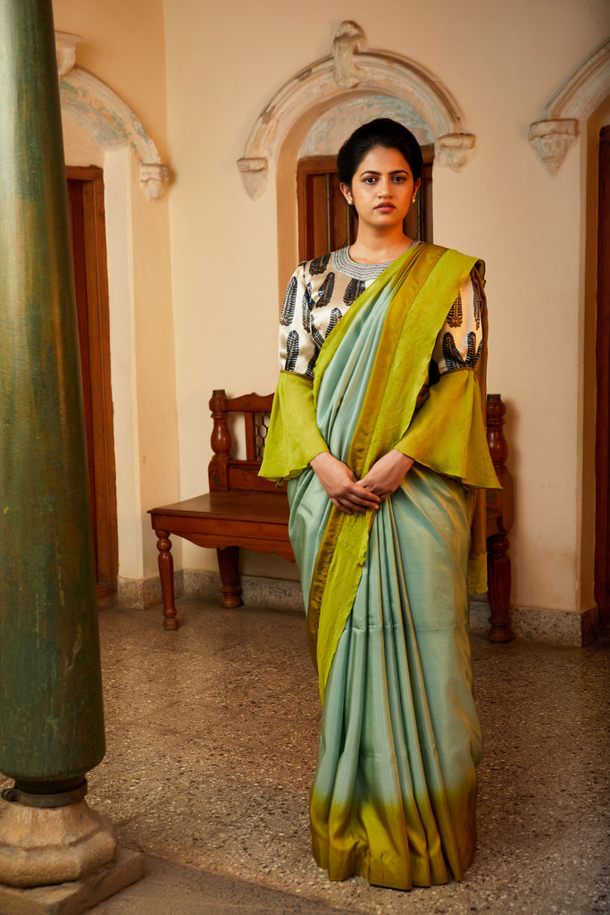 Light blue & Green silk Saree – Latha Puttanna Online Store