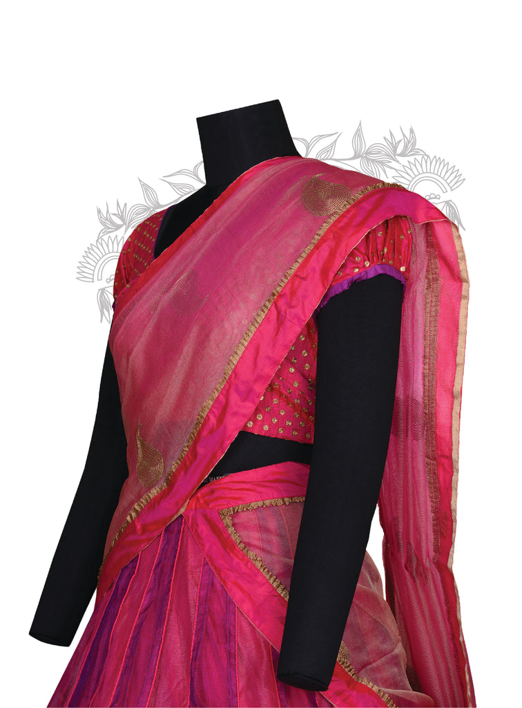 Maanika in Azalea pink and Cardinal – Latha Puttanna Online Store