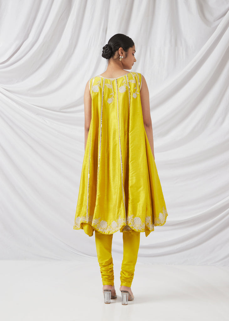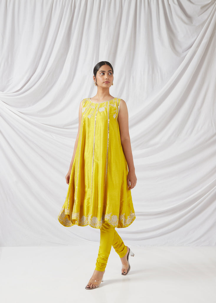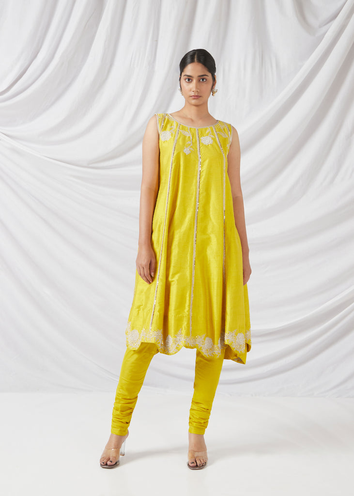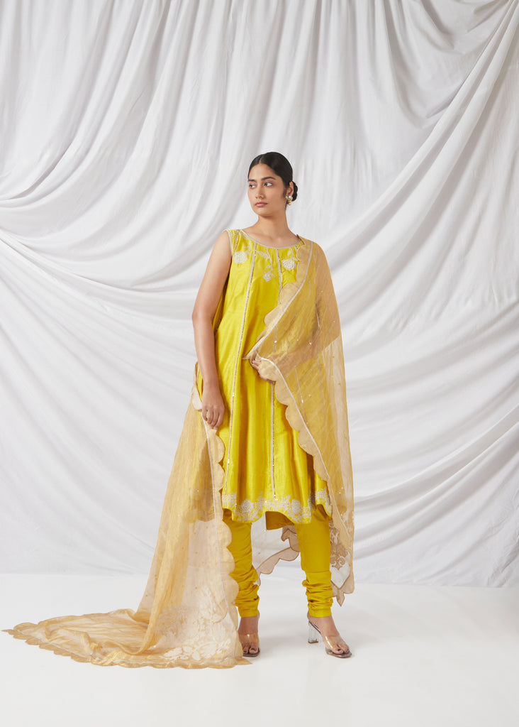 The pineapple yellow Gulabi Salwar Set exudes understated elegance with its timeless design, perfect for both festive and casual occasions, offering a blend of comfort and sophistication.