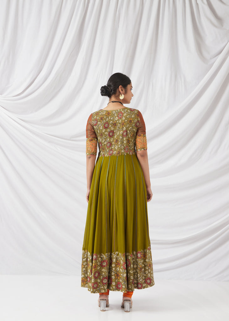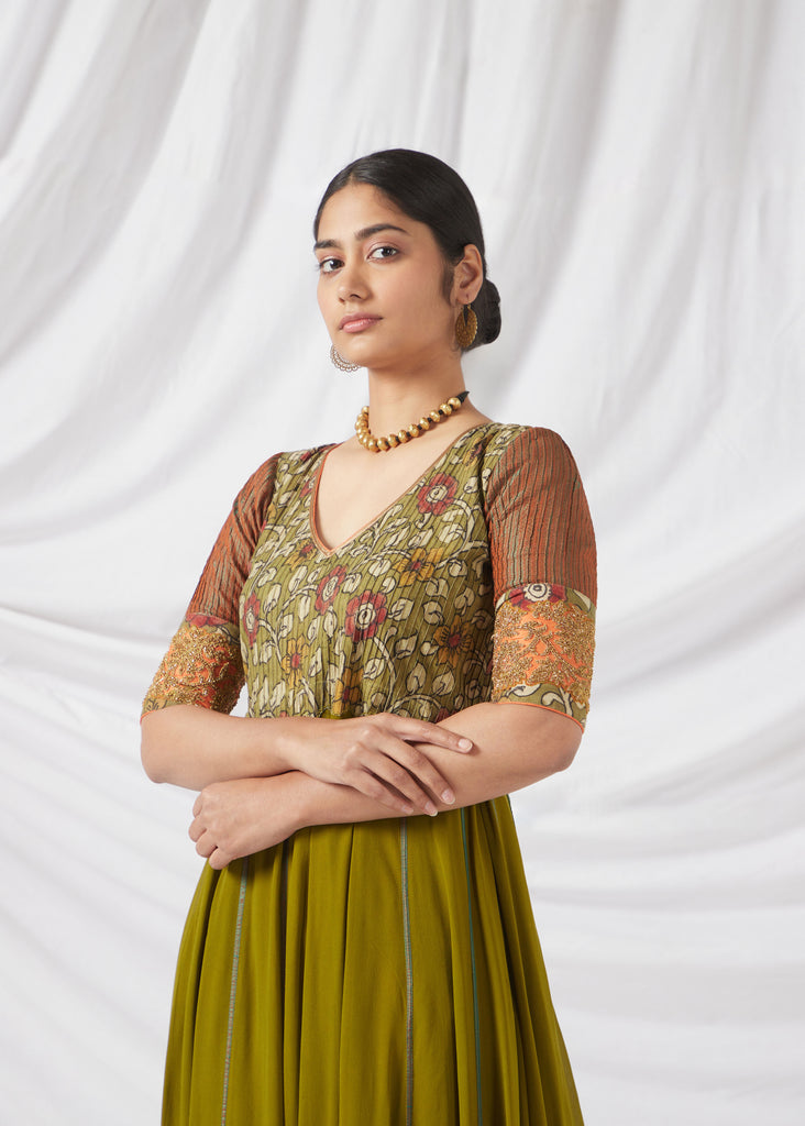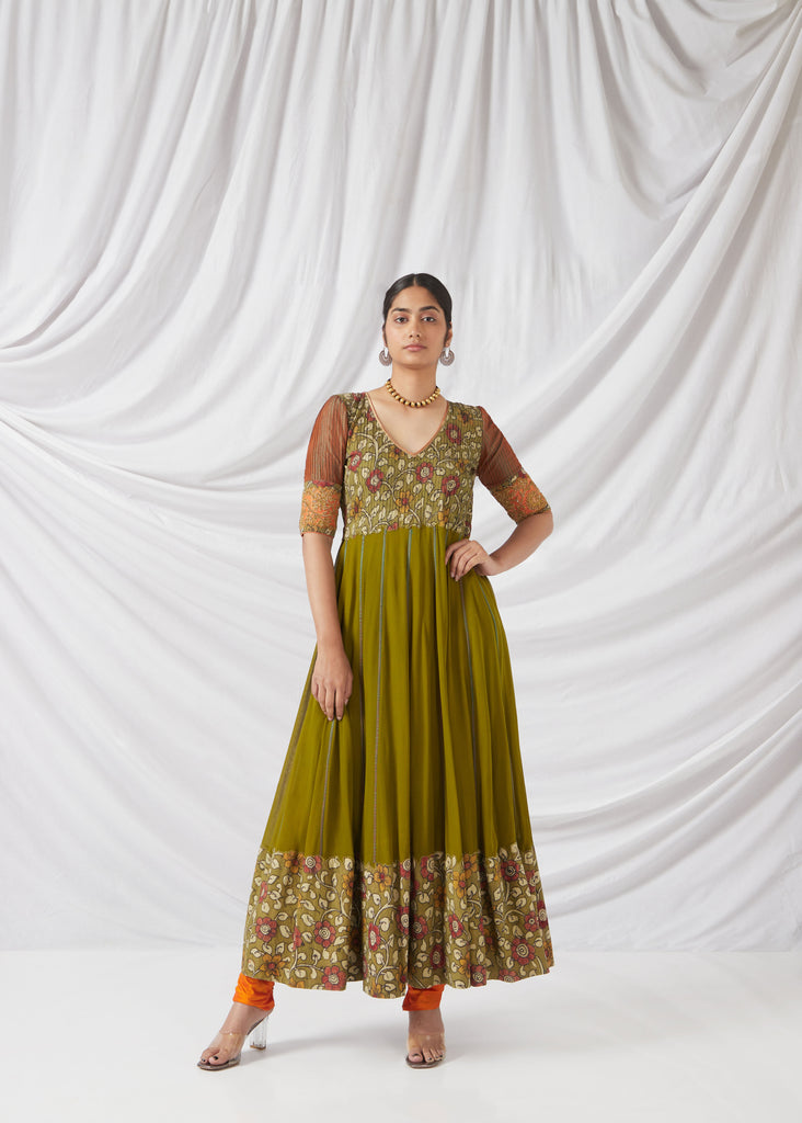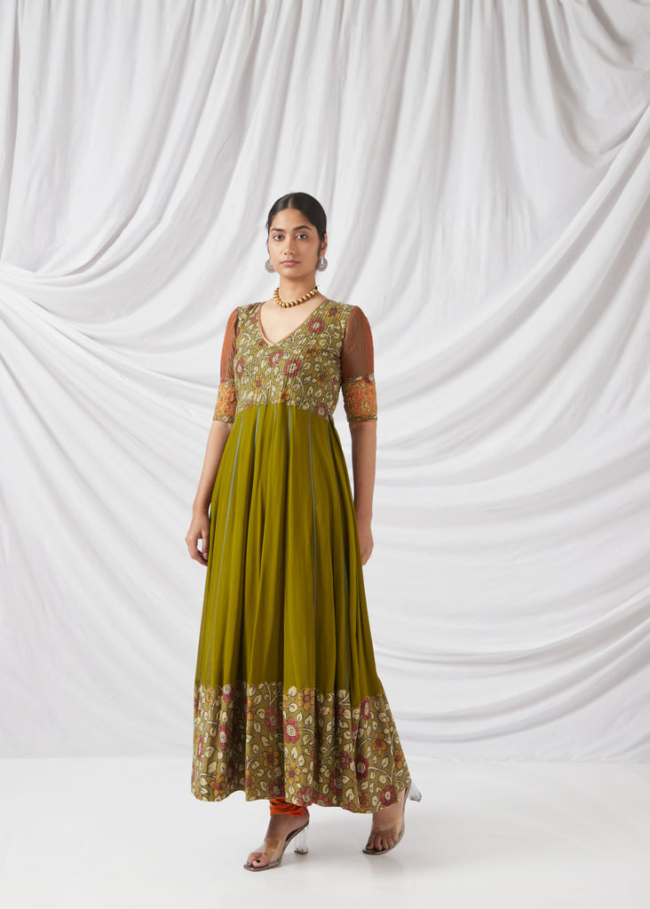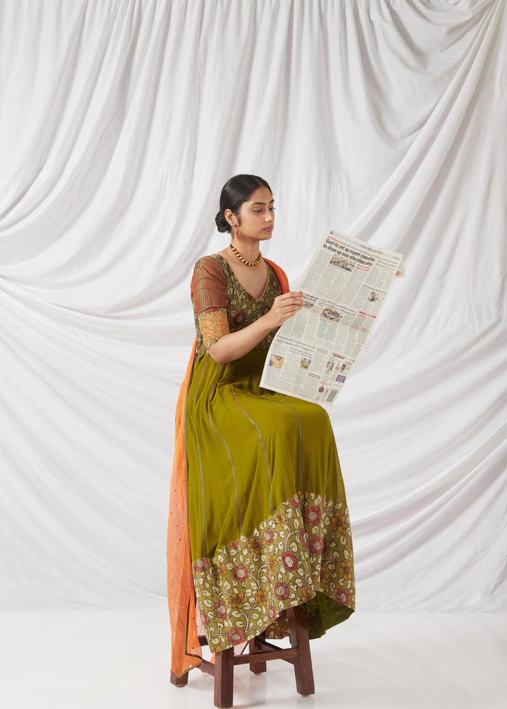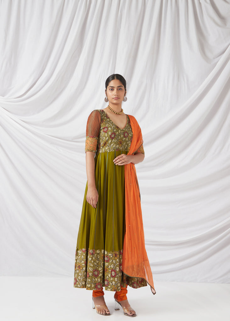 Savanthige Salwset In Army Green And Tiger Orange – Latha Puttanna Online Store