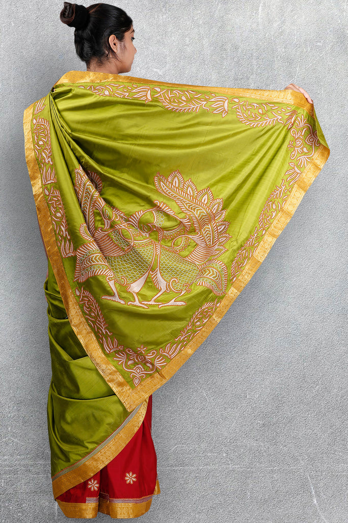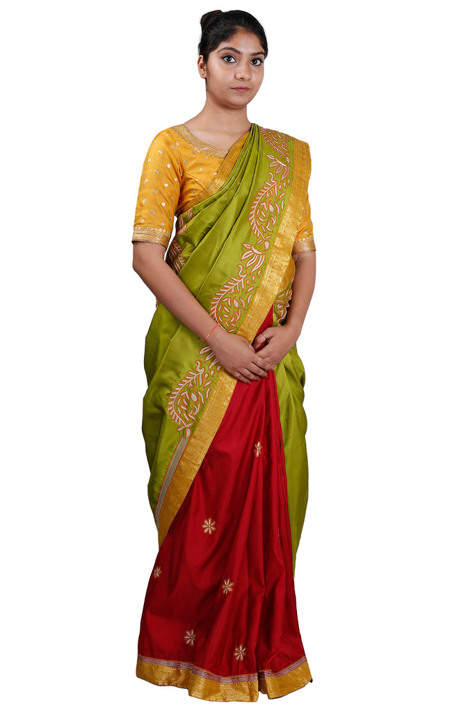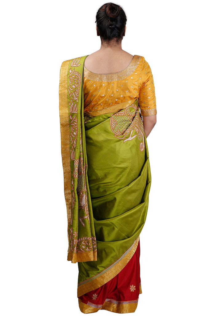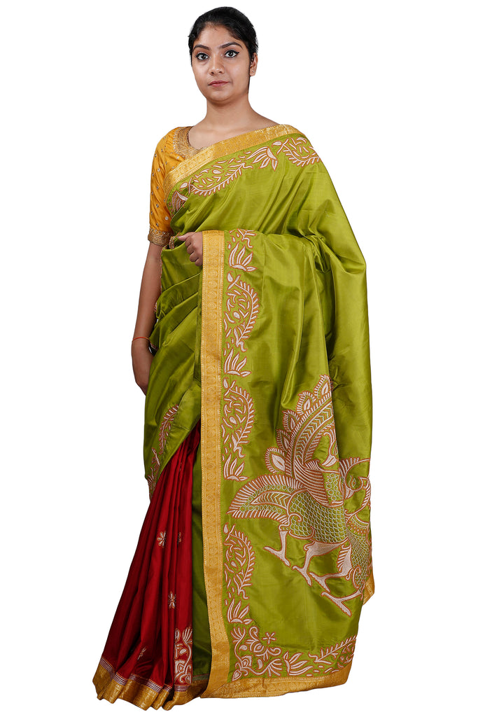 Green-Maroon Half and Half Saree – Latha Puttanna Online Store