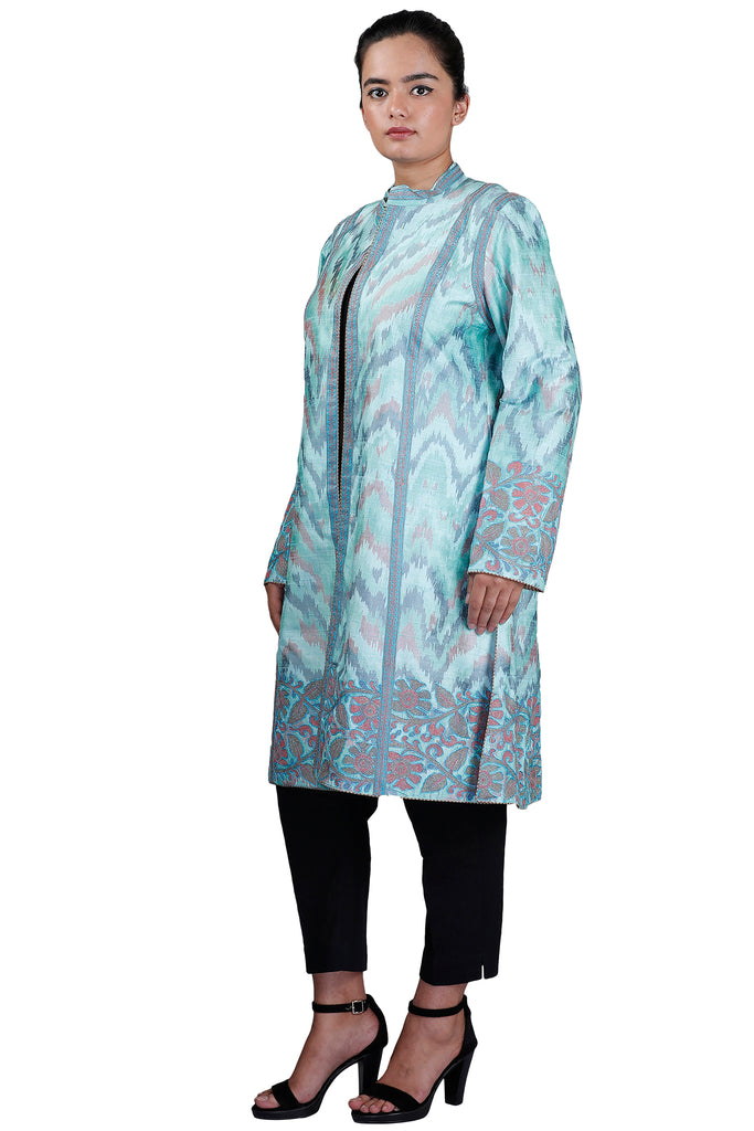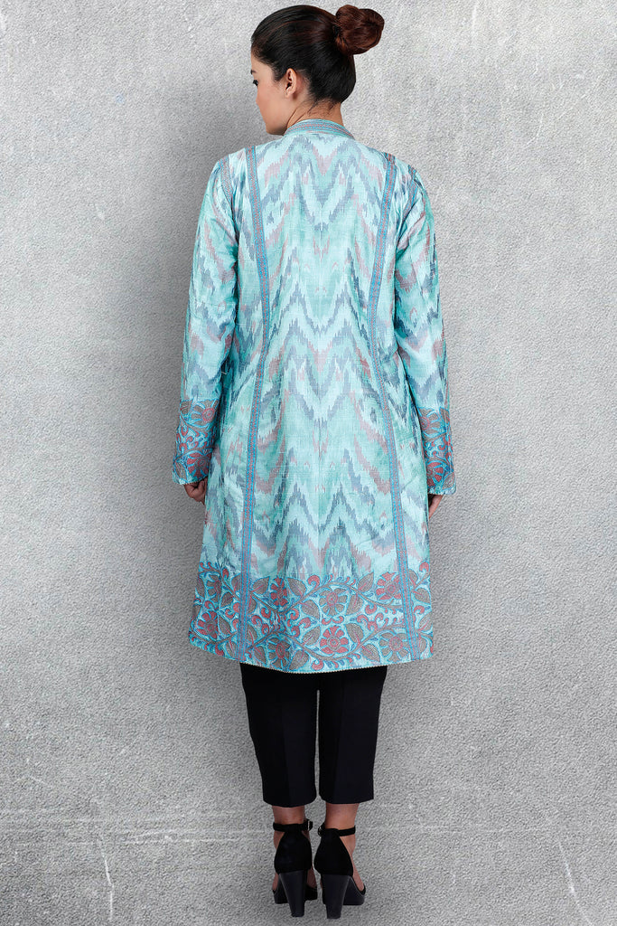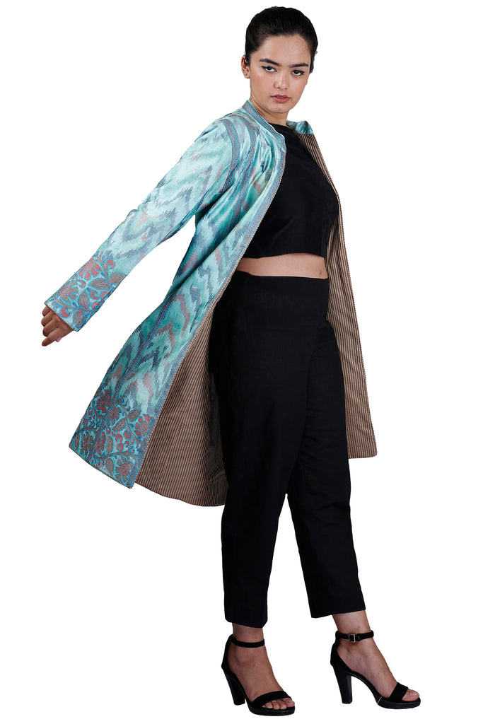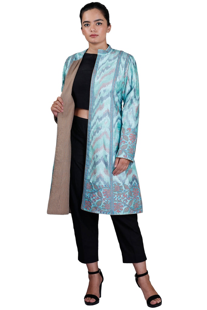 Blue Ikkat Raw Silk Jacket – Latha Puttanna Online Store