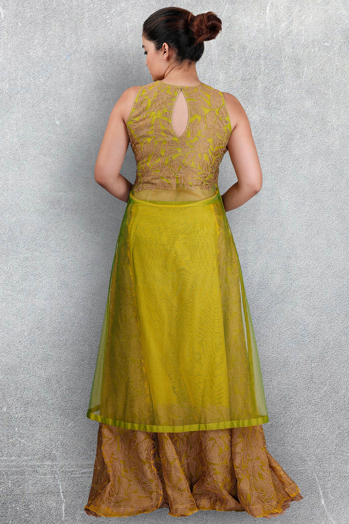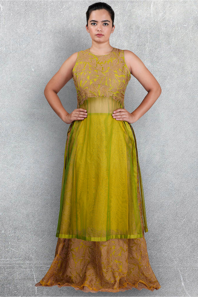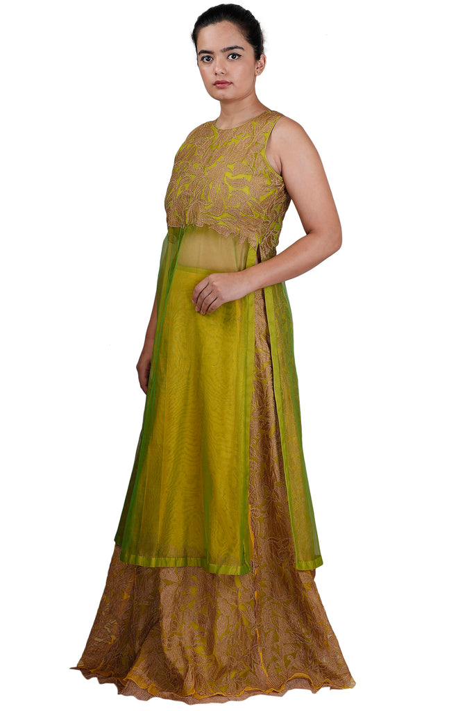 Green Applique Organza Lehanga – Latha Puttanna Online Store