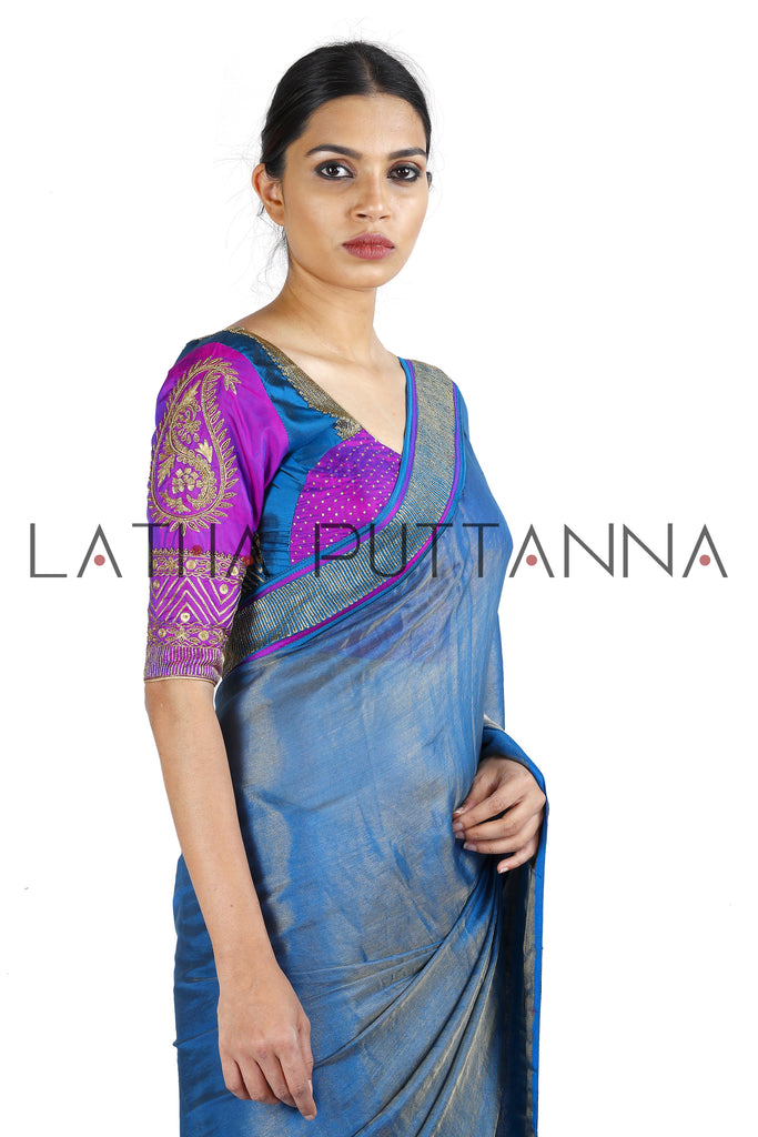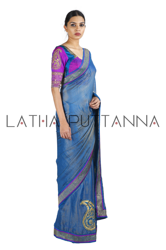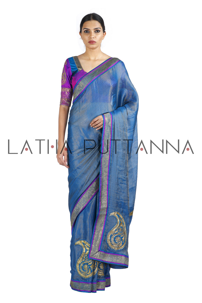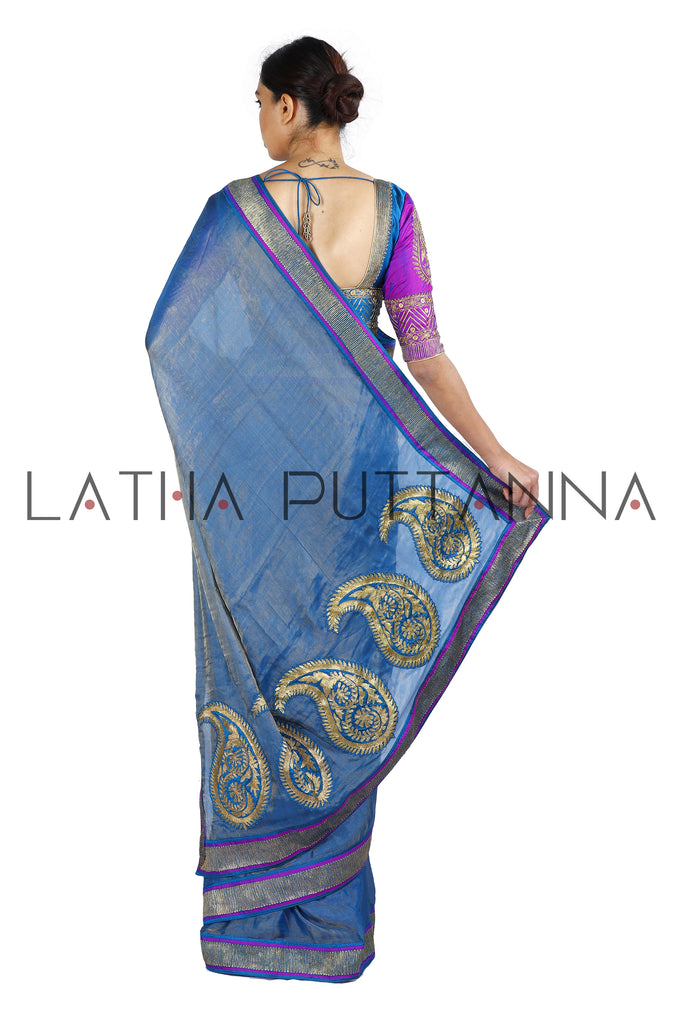 Sindhu - Blue Tissue Saree with Paisleys on Pleats and Pallu – Latha Puttanna Online Store