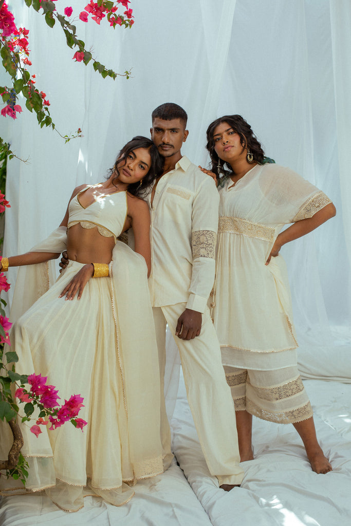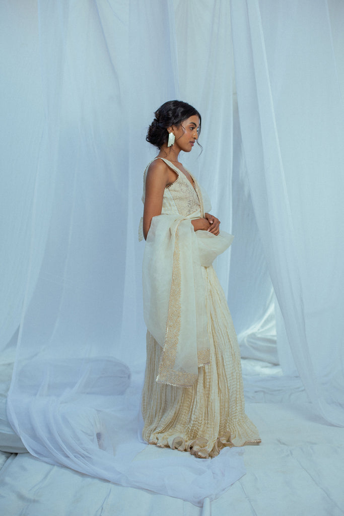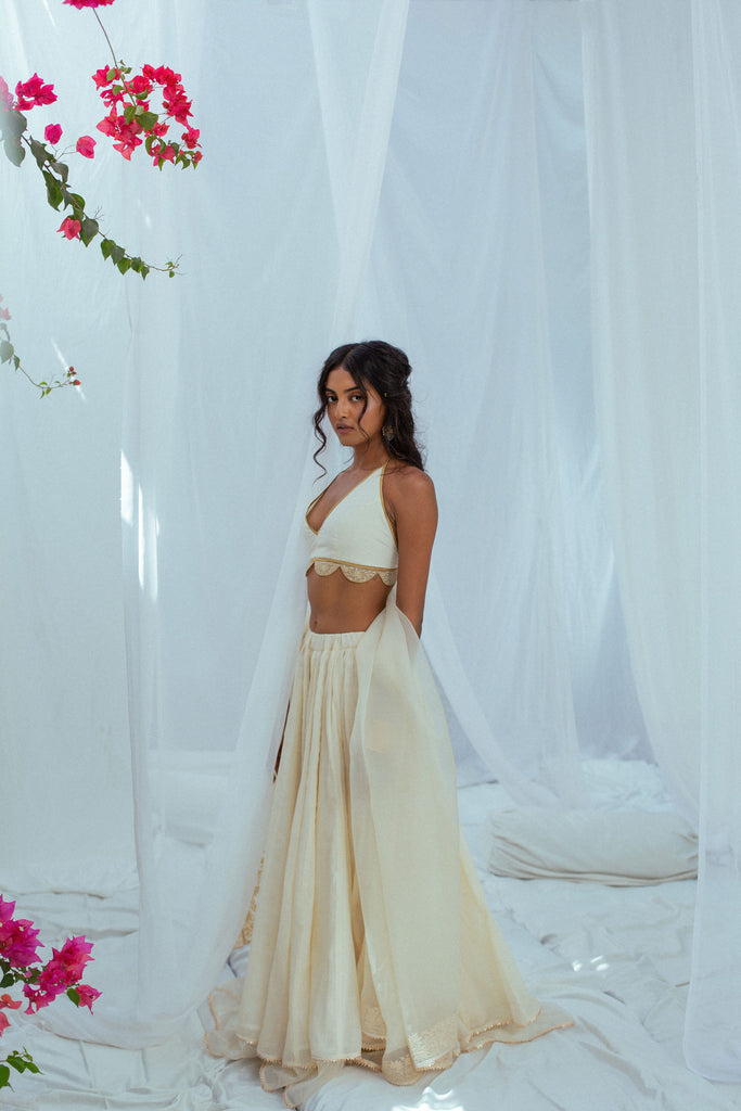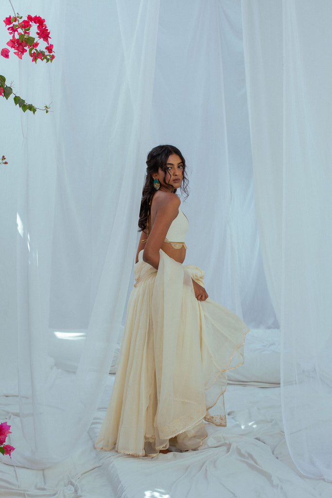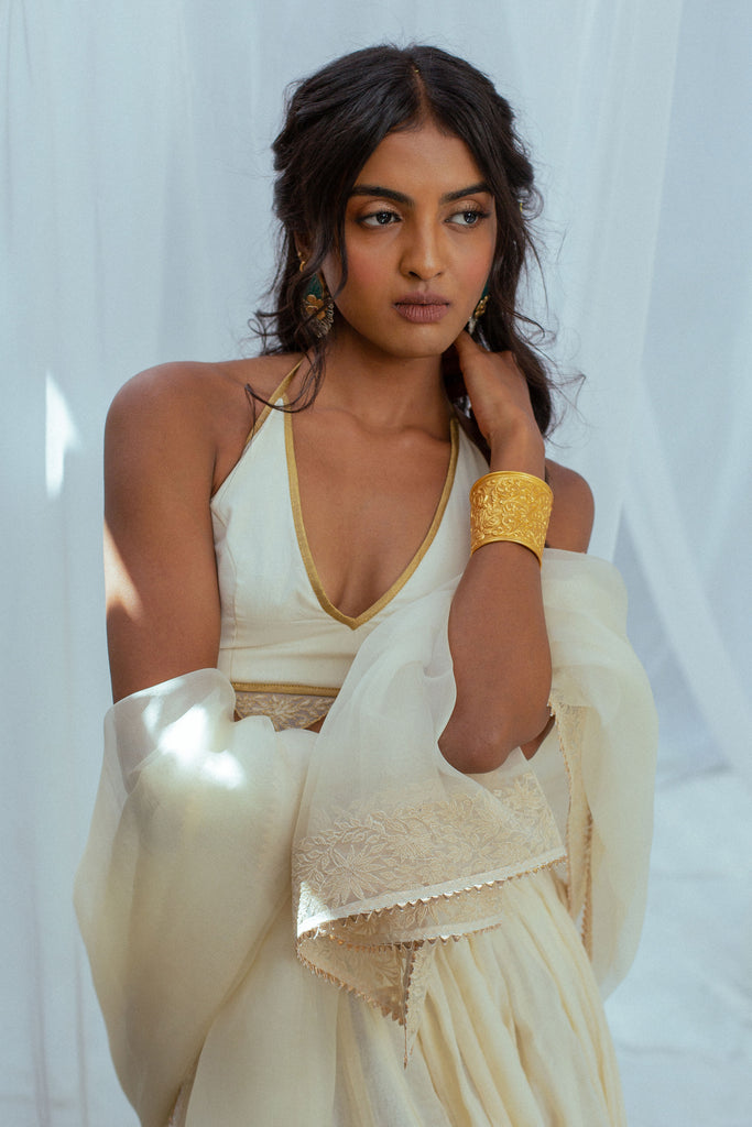 Sometimes, all it takes is a dupatta to change your outfit from fashionable to show-stopping. That's exactly what this silk organza dupatta in off-white, embellished with cream-colored machine embroidery will do for you!