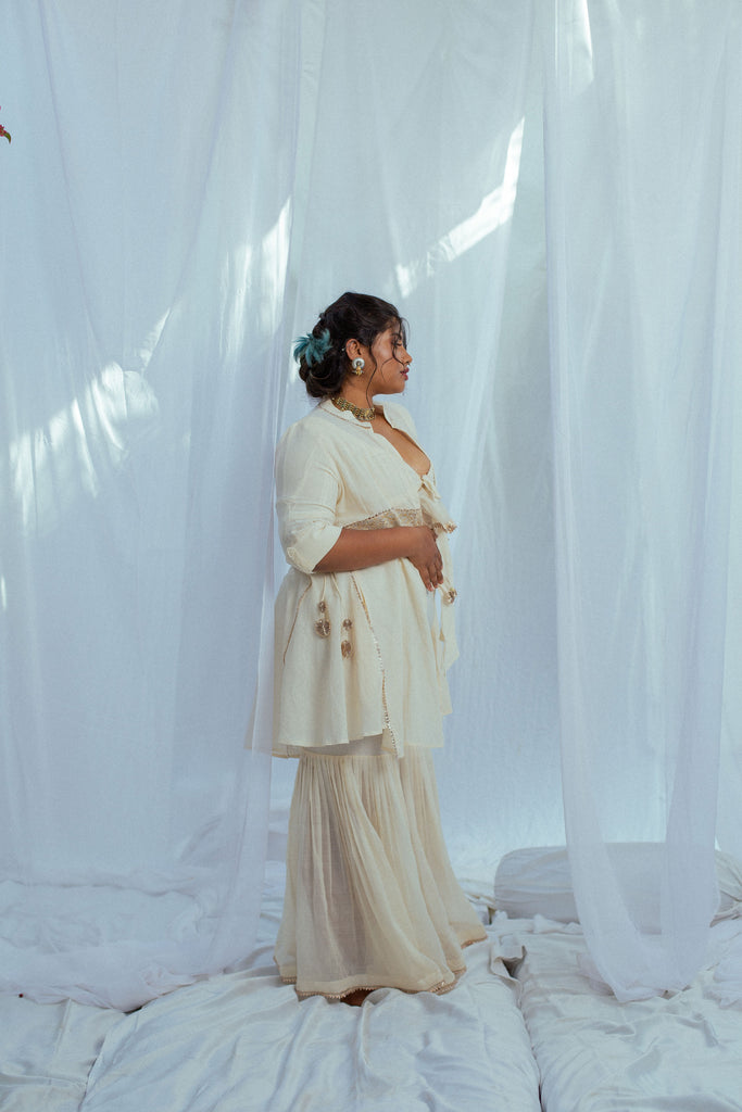 Looking for the perfect summer staple? Made with premium hand-woven cotton, this elegant off-white pair of sharara is a must-have!