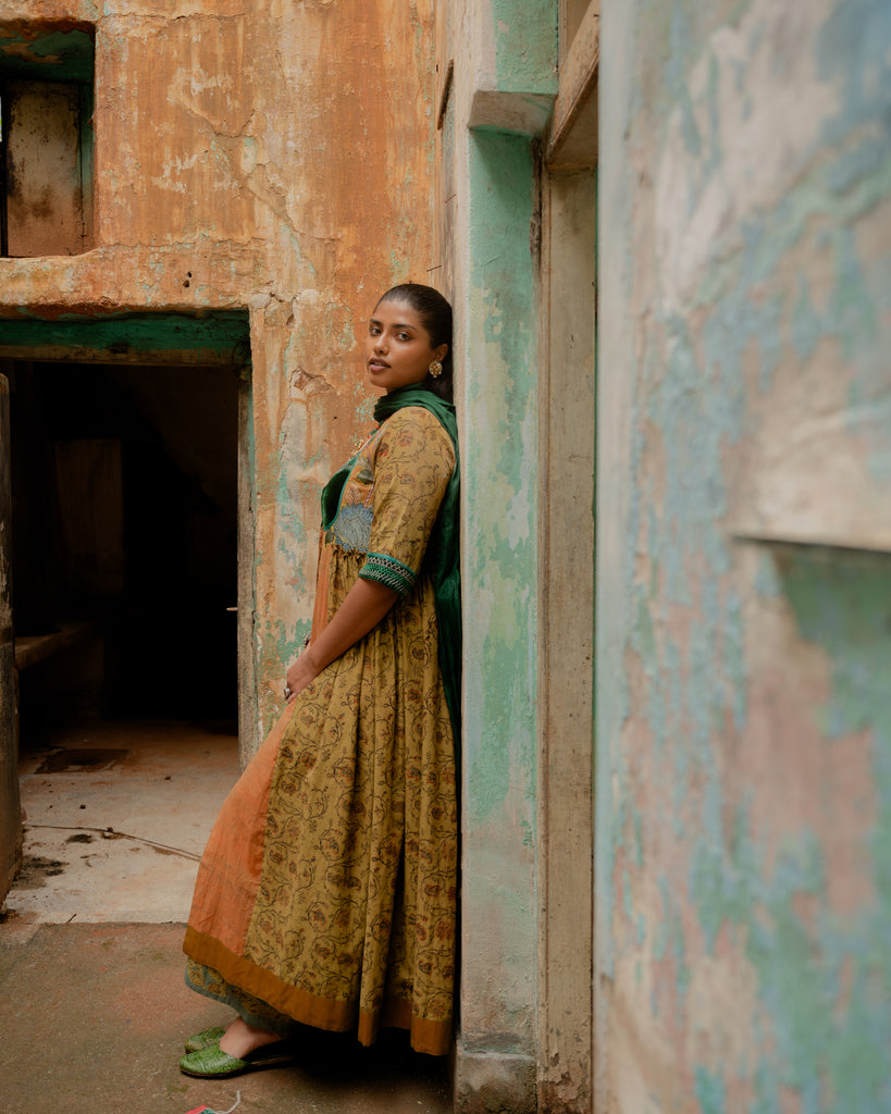 Here’s What You Get: Sandalwood Anarkali with Block printed Mangalgiri Handloom Cotton pant