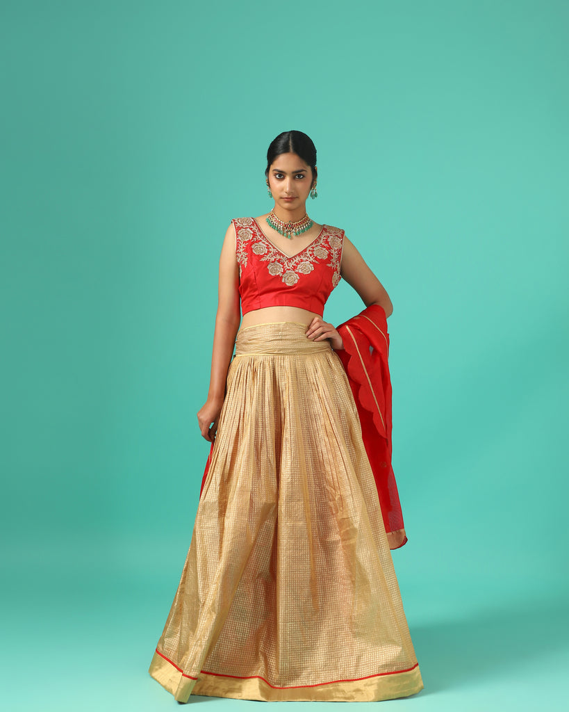 Here’s What You Get: Skirt + Blouse + Dupatta + Sash