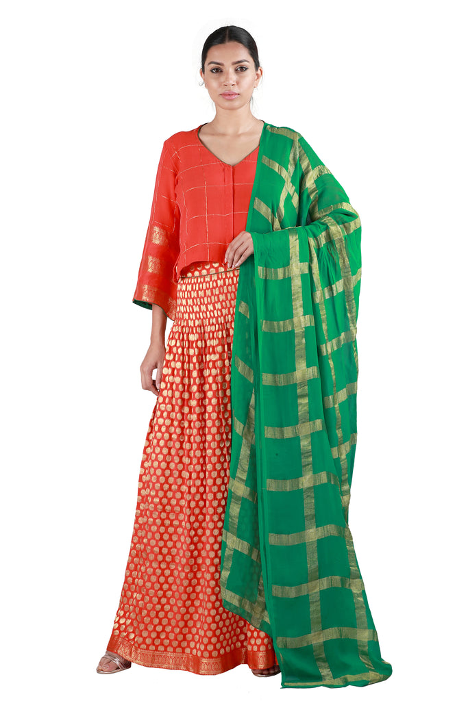 Orange and Green Lehenga – Latha Puttanna Online Store