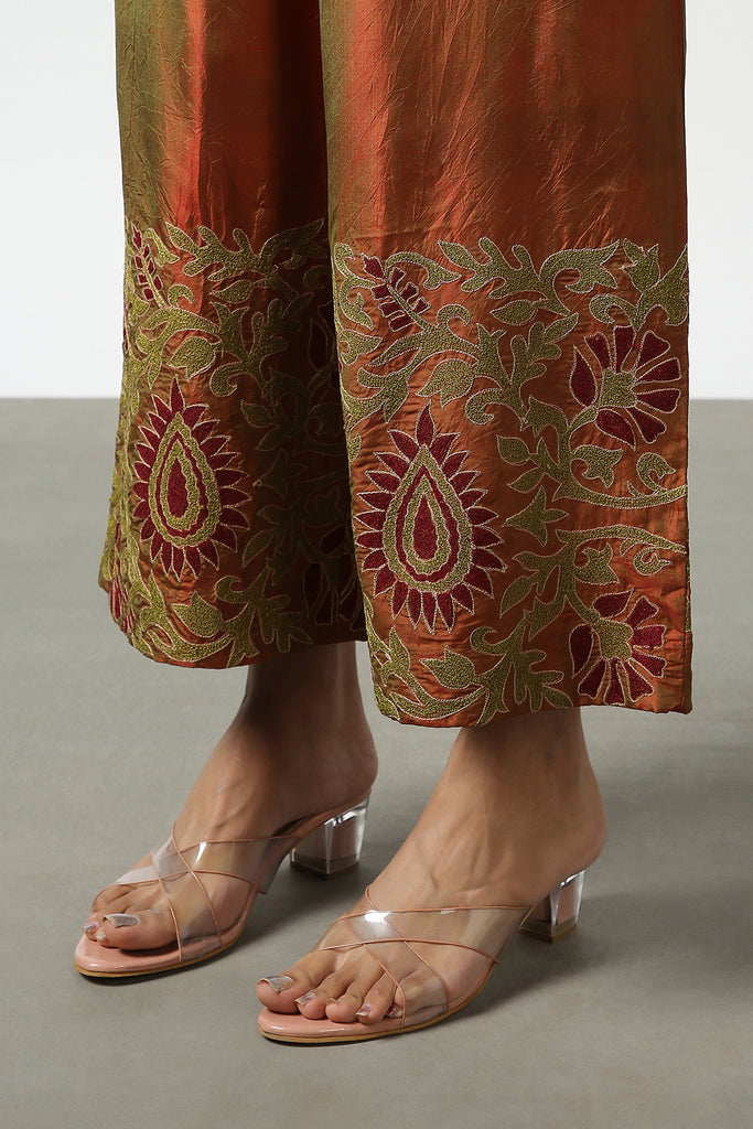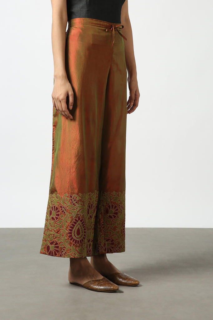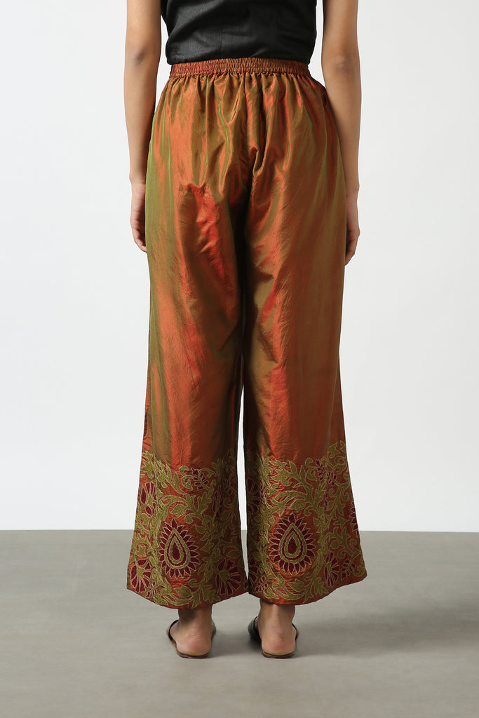 Brown Silk Embroidered Pant