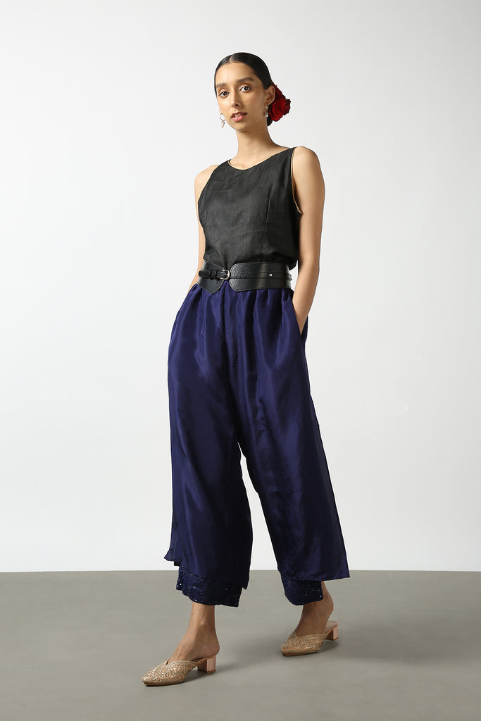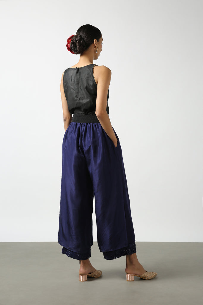 Dark Blue Double Layer Sequenced Pant – Latha Puttanna Online Store