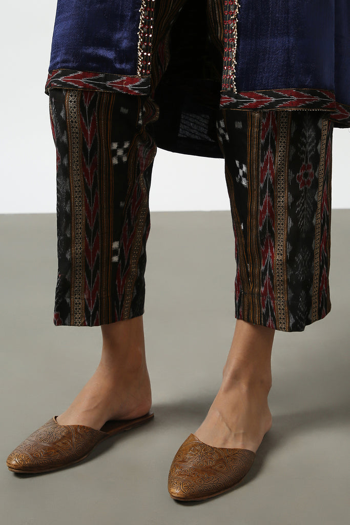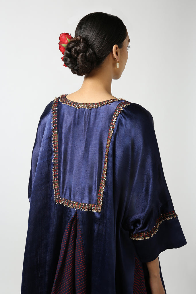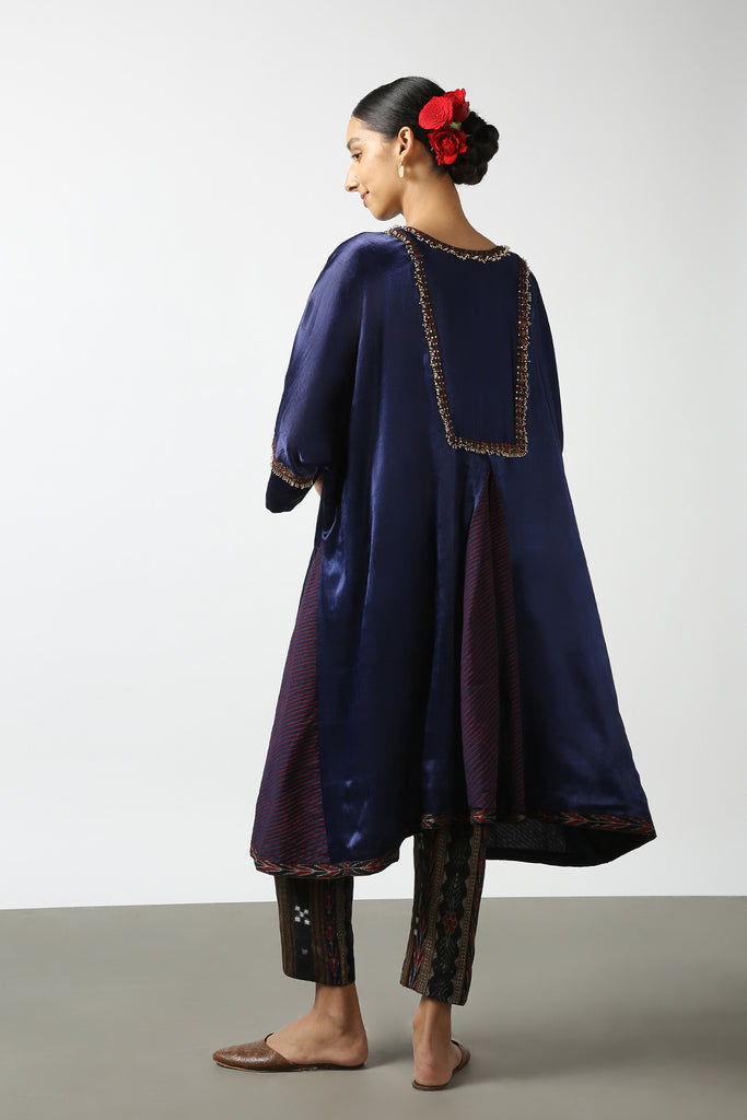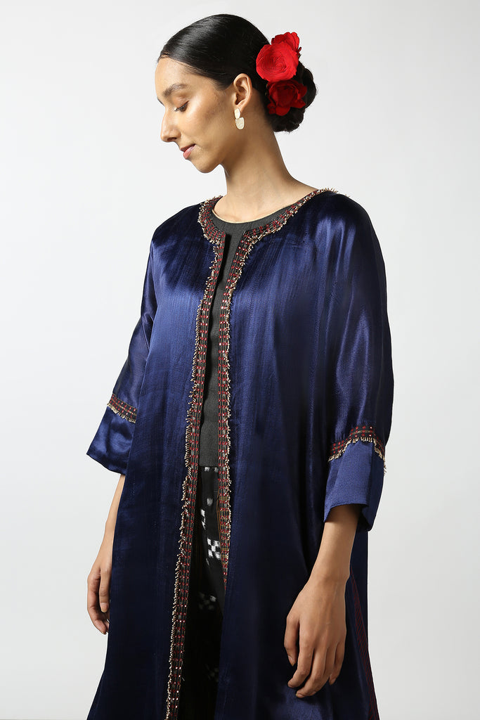 Dark Blue Mushroo Silk and Ikat Embroidered Jacket