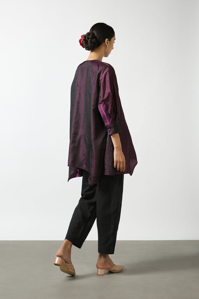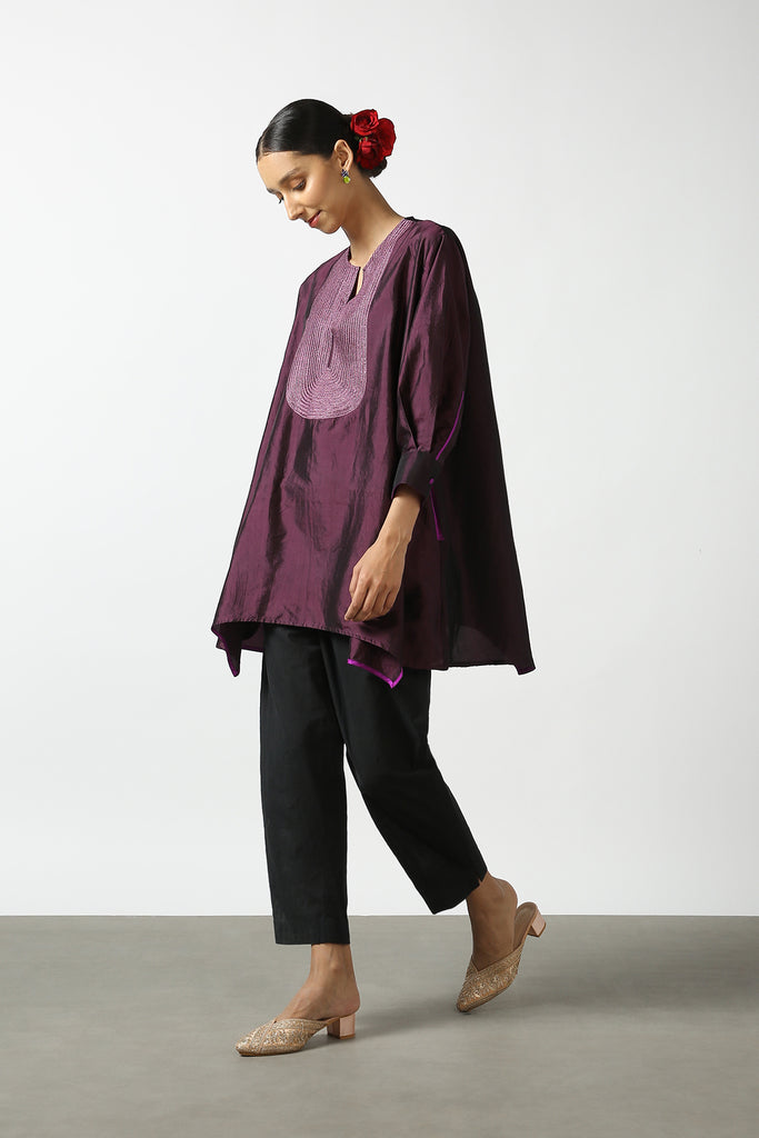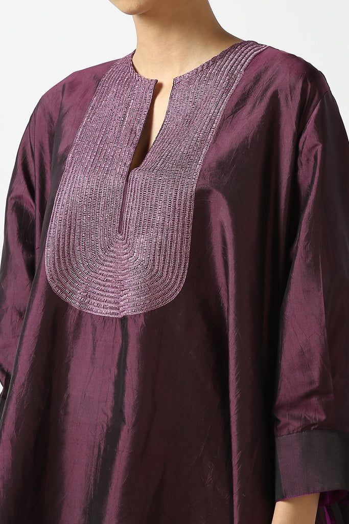 Purple Silk Hand Embroidered Short Phiran Top