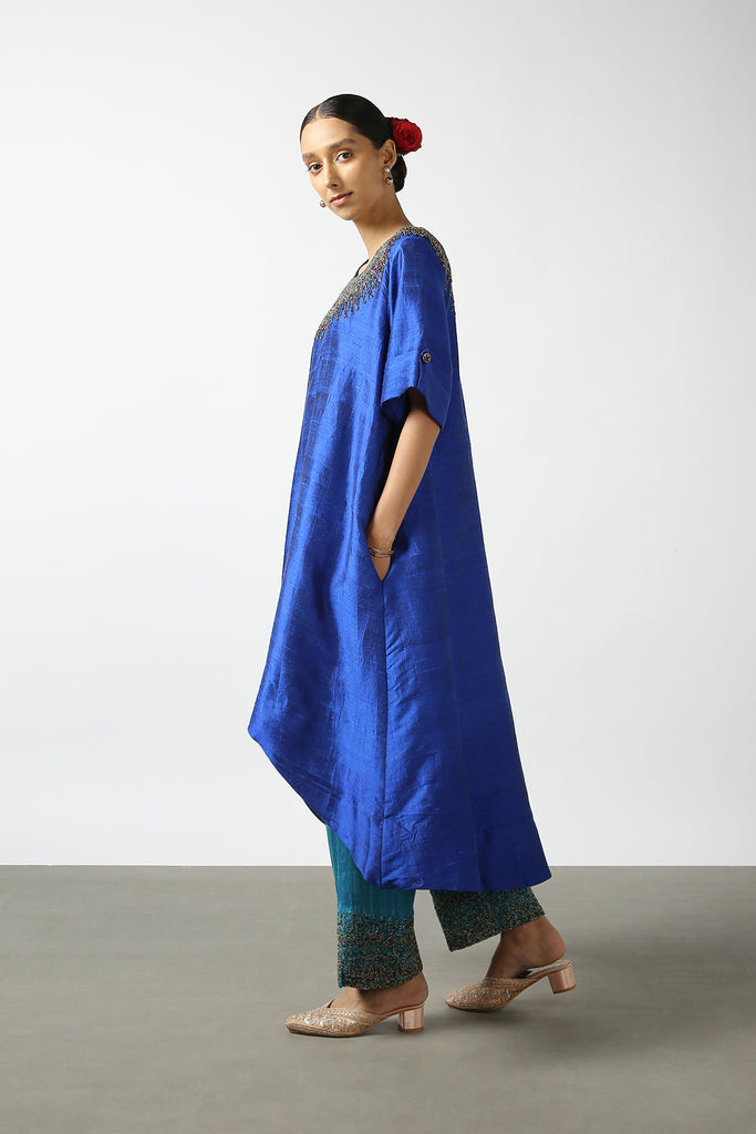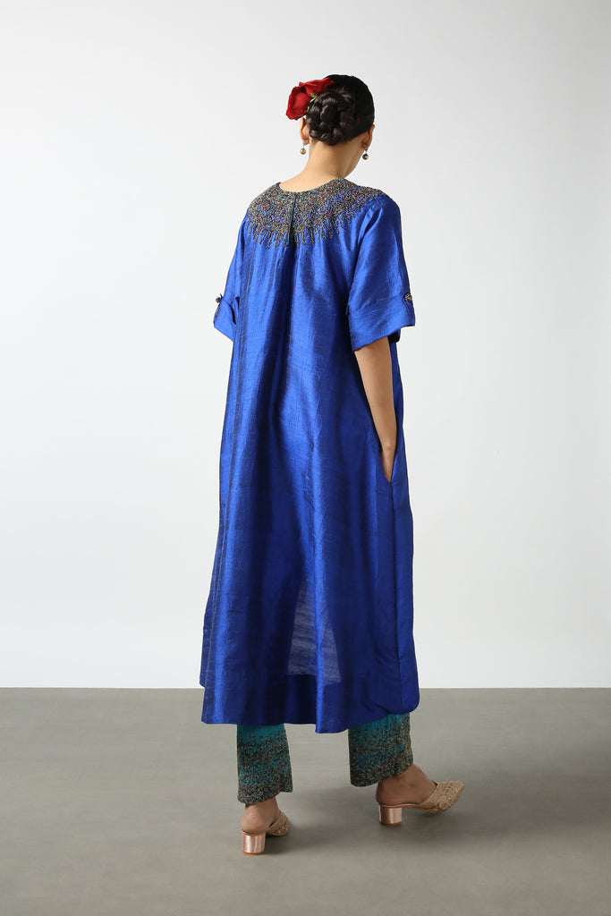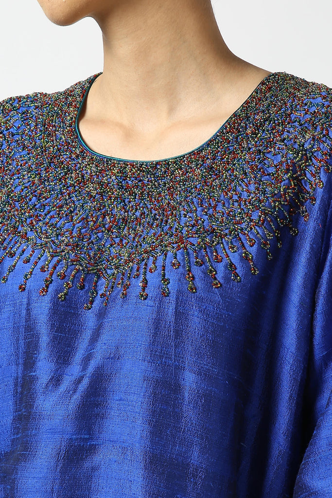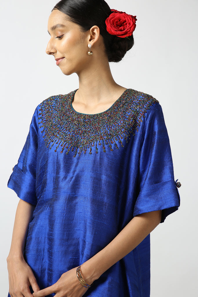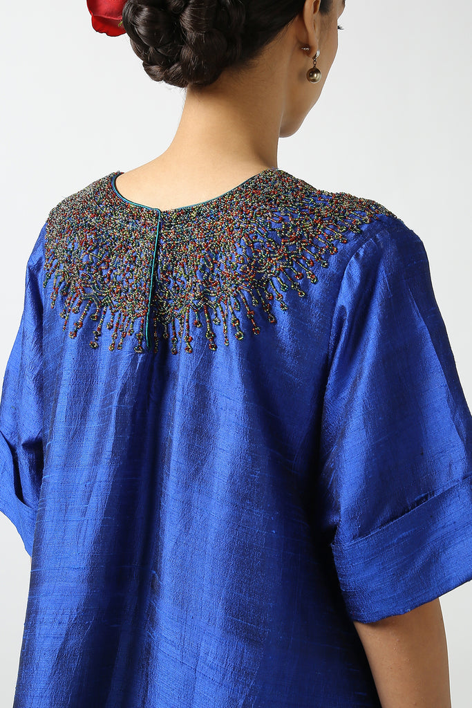 Raw Silk Top with Multicolor Beadwork on Neck – Latha Puttanna Online Store