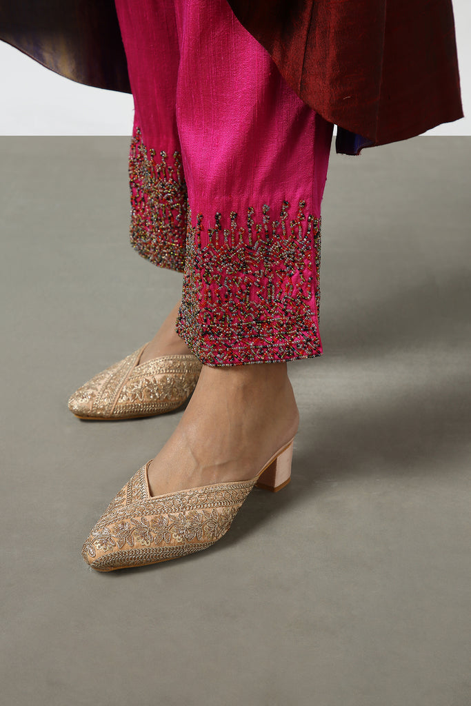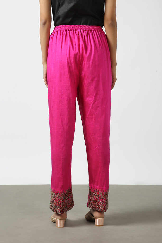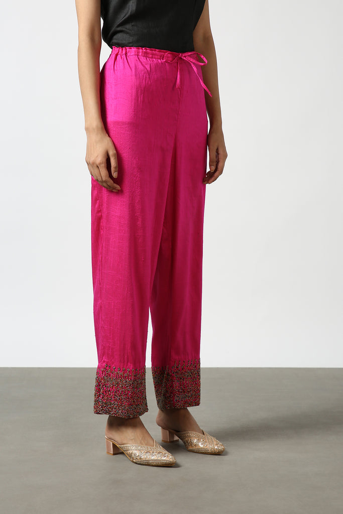 Bright, vibrant, and unmistakably eye-catching – this pair of raw silk pants in orange will bring out your inner confidence and add a spring in your step. Detailed with beadwork at the bottom, you can style it in a myriad ways – be it with a crisp white blouse for a fusion workwear look or a similarly ornate blouse for festive occasions. Style it your way!