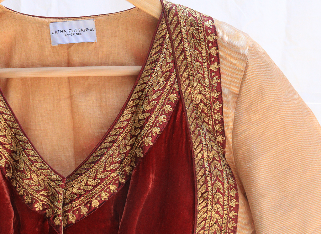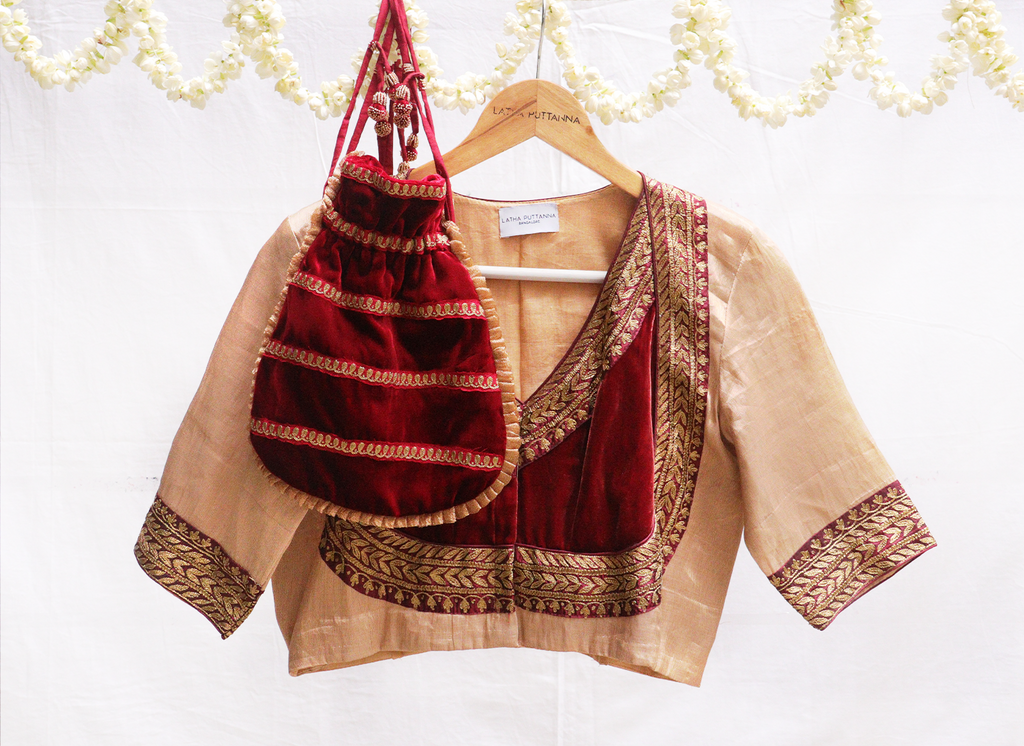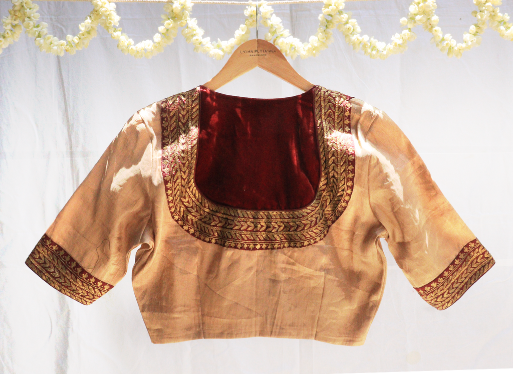 Blonde gold,Kanjeevaram tissue,Hand Embroidery blouse – Latha Puttanna Online Store