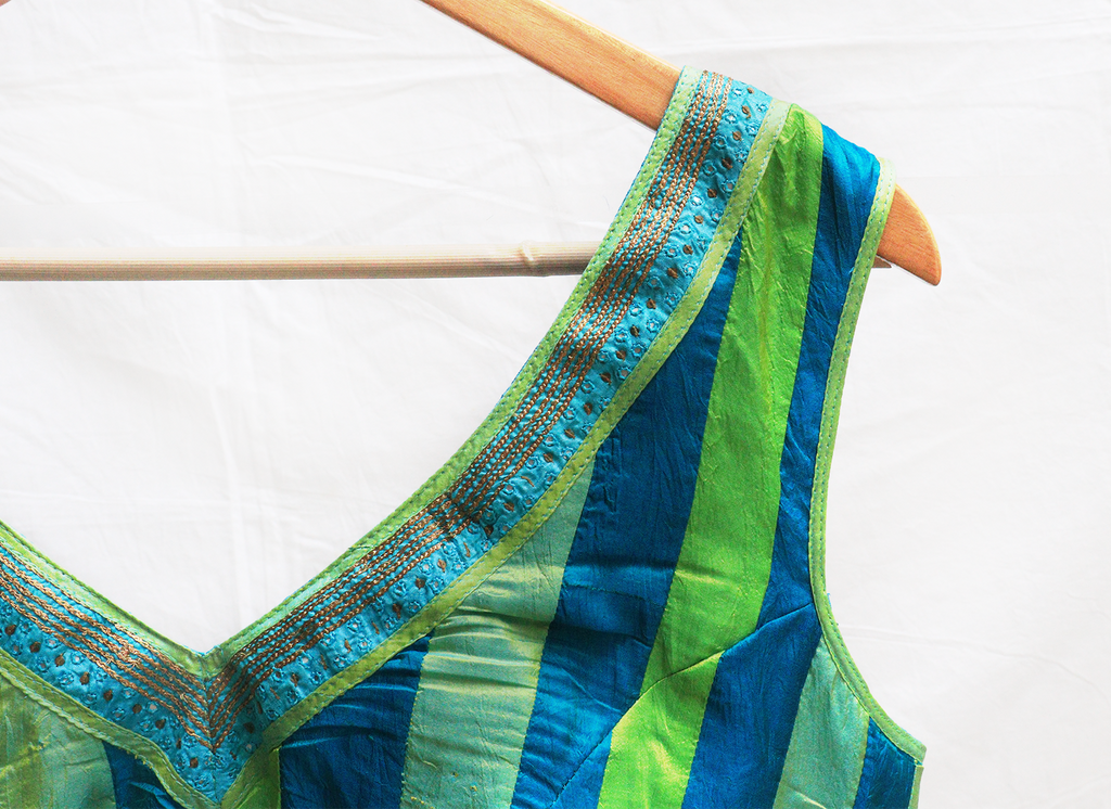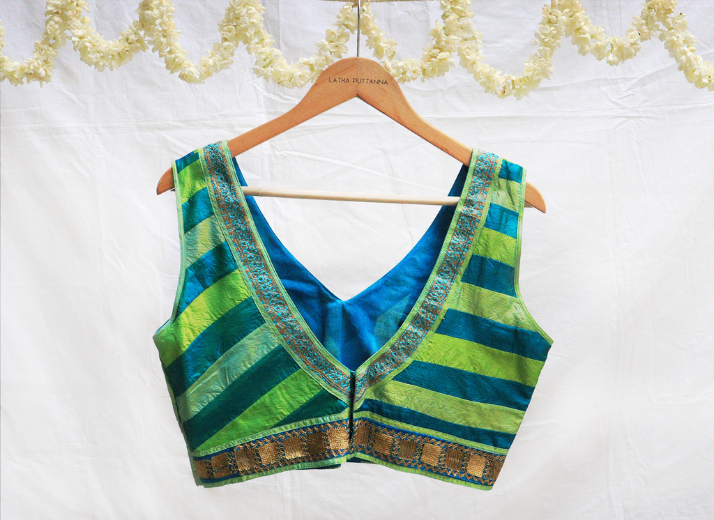 Blue, Parrot green and light green, Karnataka silk, Hand Embroidery an – Latha Puttanna Online Store