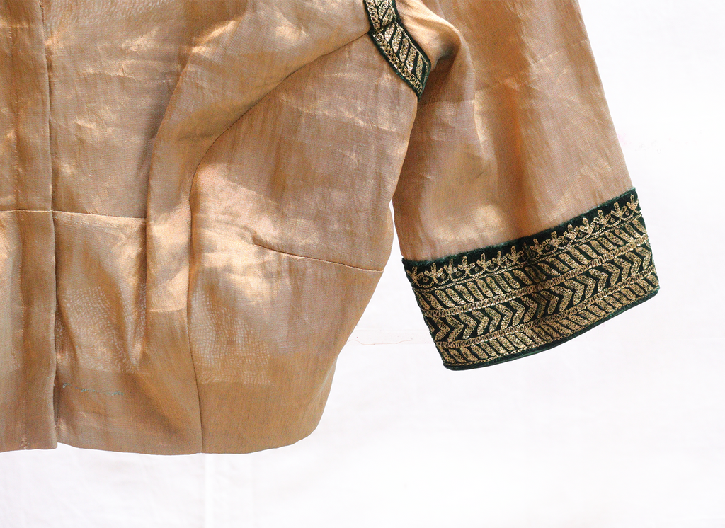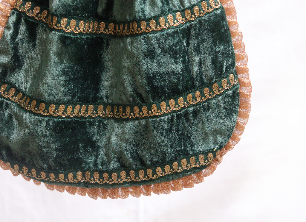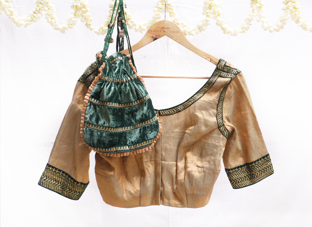 Dark green velvet potli with gold jari embroidery – Latha Puttanna Online Store
