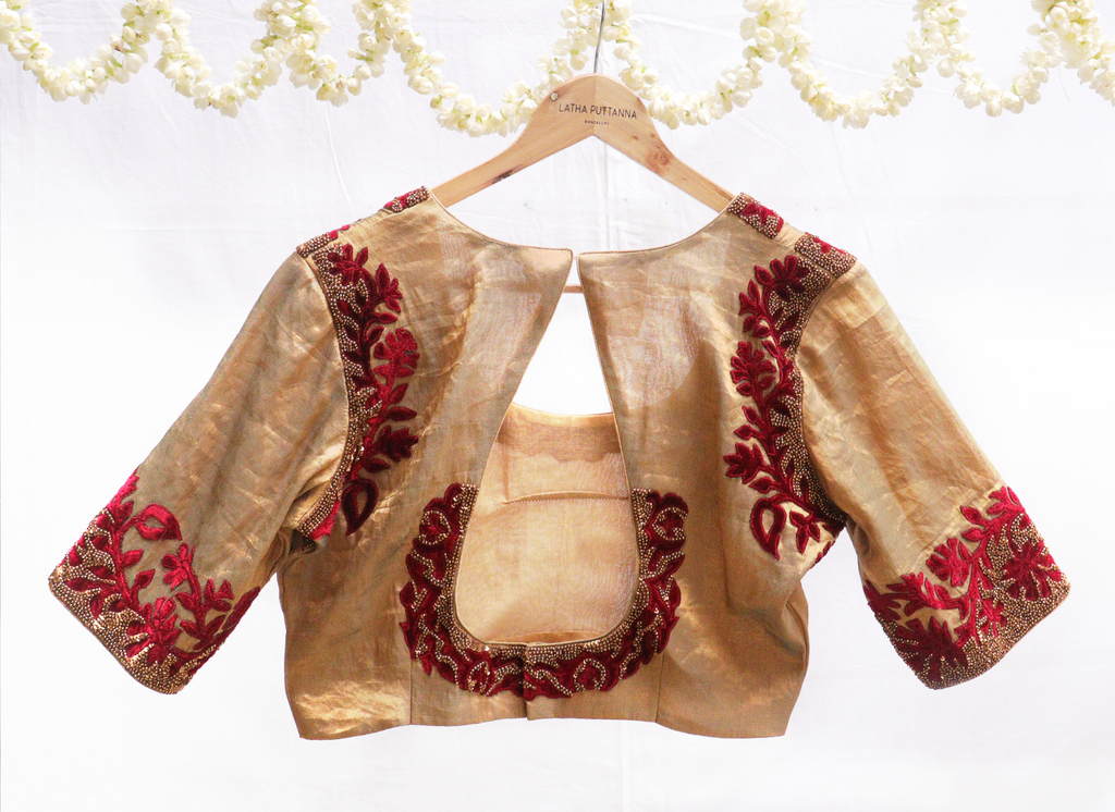 Golden brown , Kanjeevaram tissue,Applique blouse