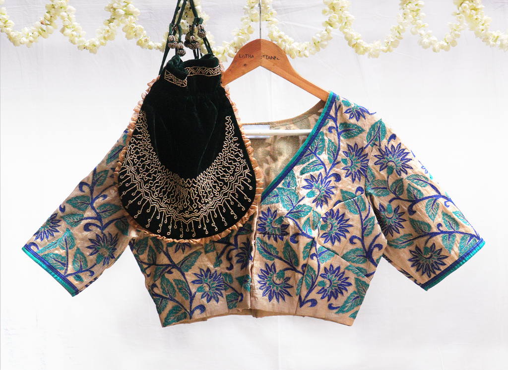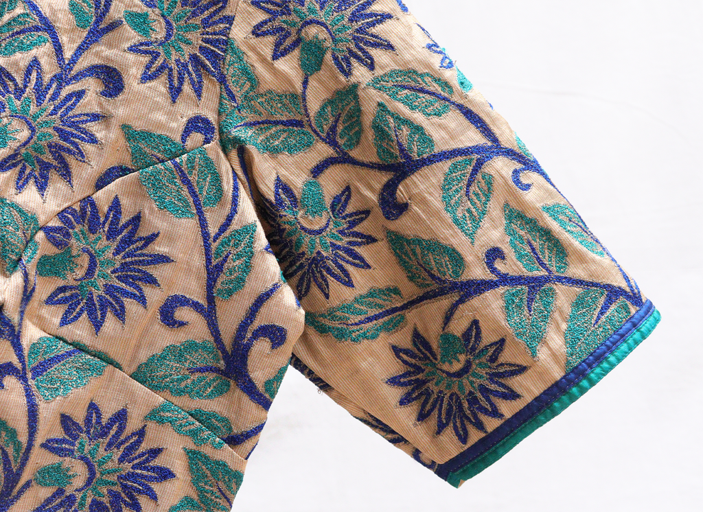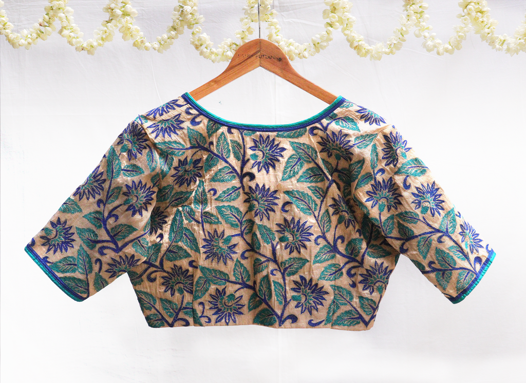 Sepia Gold, Kanjeevaram tissue,Embroidery blouse