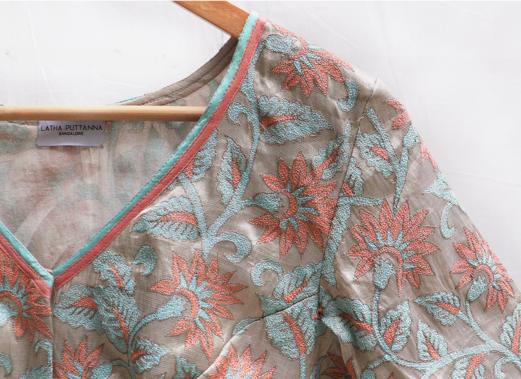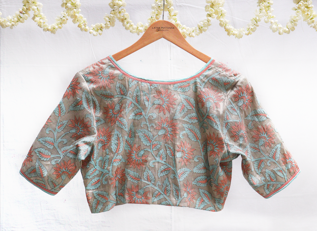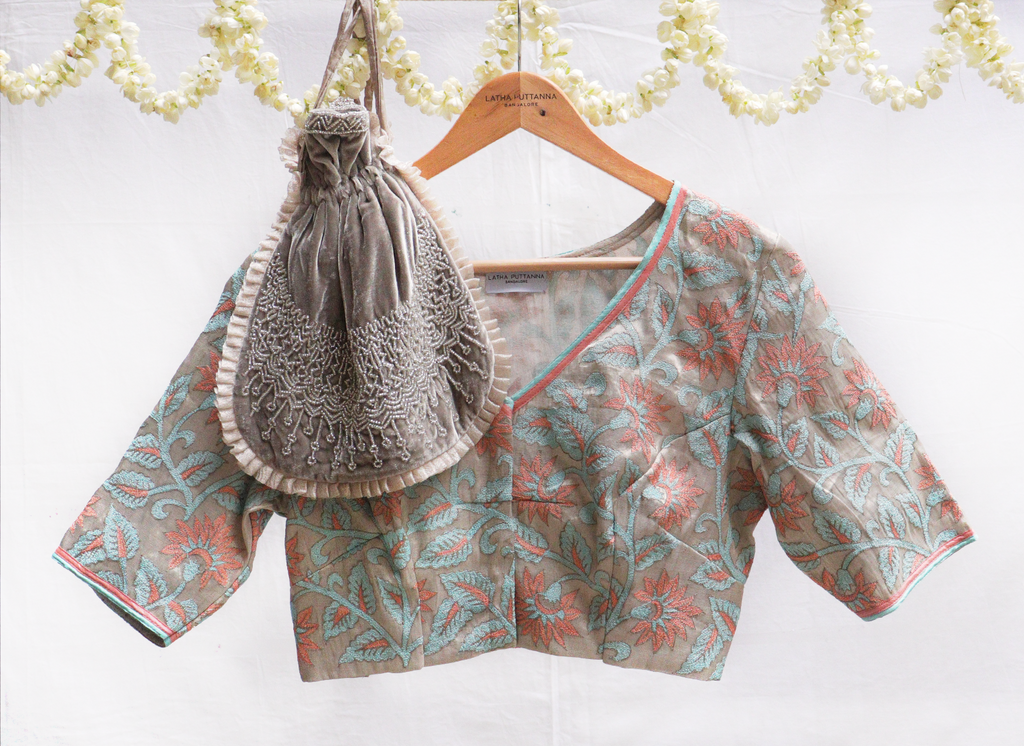 Silver, Kanjeevaram tissue, Embroidery blouse