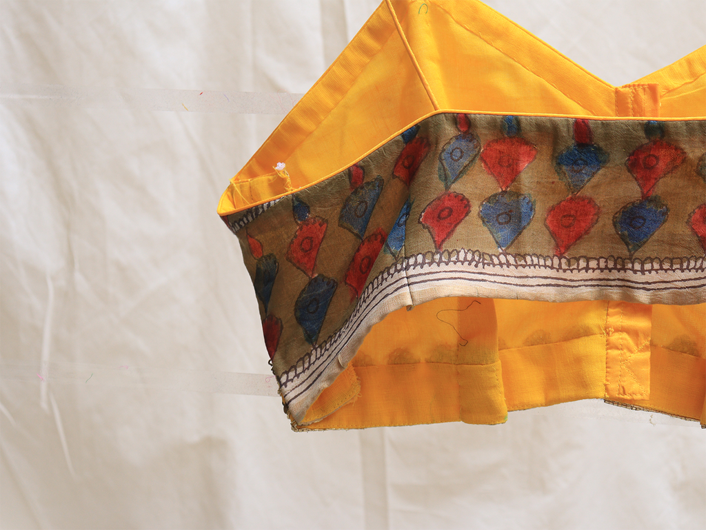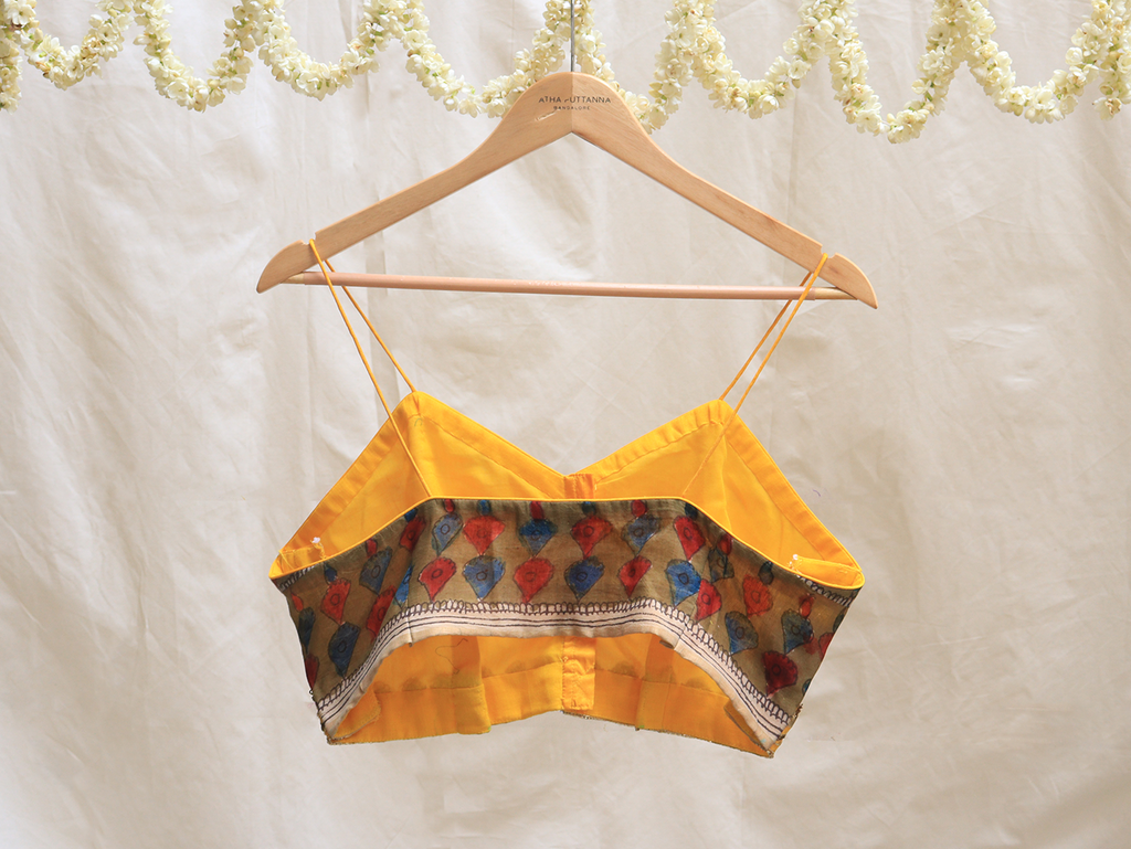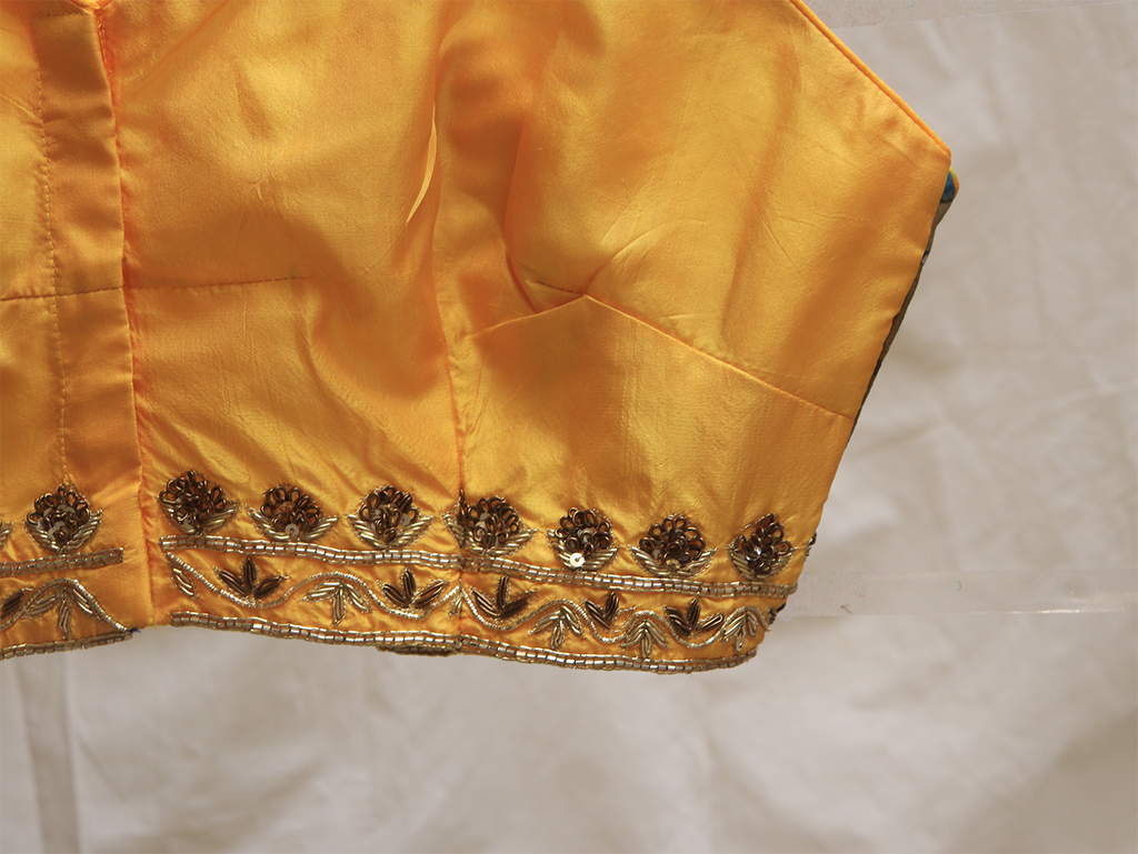 Cyber yellow, Karnataka silk, Hand embroidery bralette