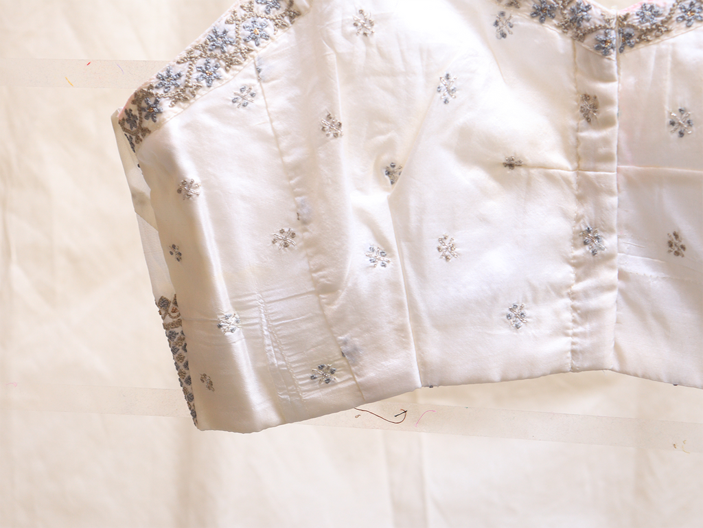 Back Detail - Silk thread, Aari silver and gold jari beaten Hand embroidery