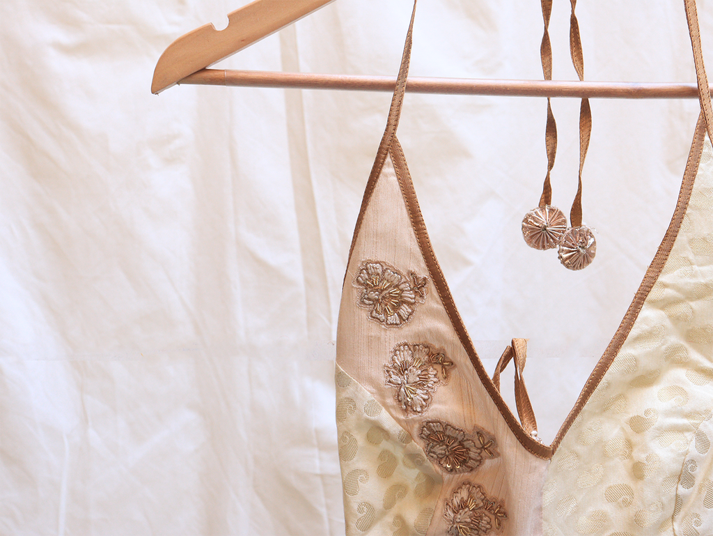 Off white, Raw silk and Brocade, Hand embroidery bikini