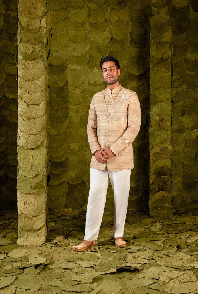 Gandu (ಗಂಡು) Bandhgala in Cuban Sand – Latha Puttanna Online Store