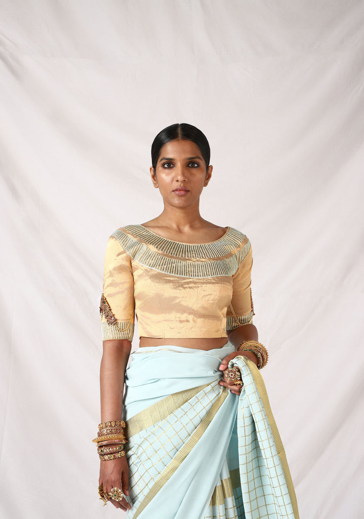 The 'Opulent Odes' collection features intricately woven sarees in pure gold jari, that is a collaboration between Latha Puttanna, who has garnered a reputation over the last 31 years for her extraordinary design expertise and Chamundi Silks, a prestigious silk manufacturing institution celebrated for maintaining a flawless quality standard for 75 years.