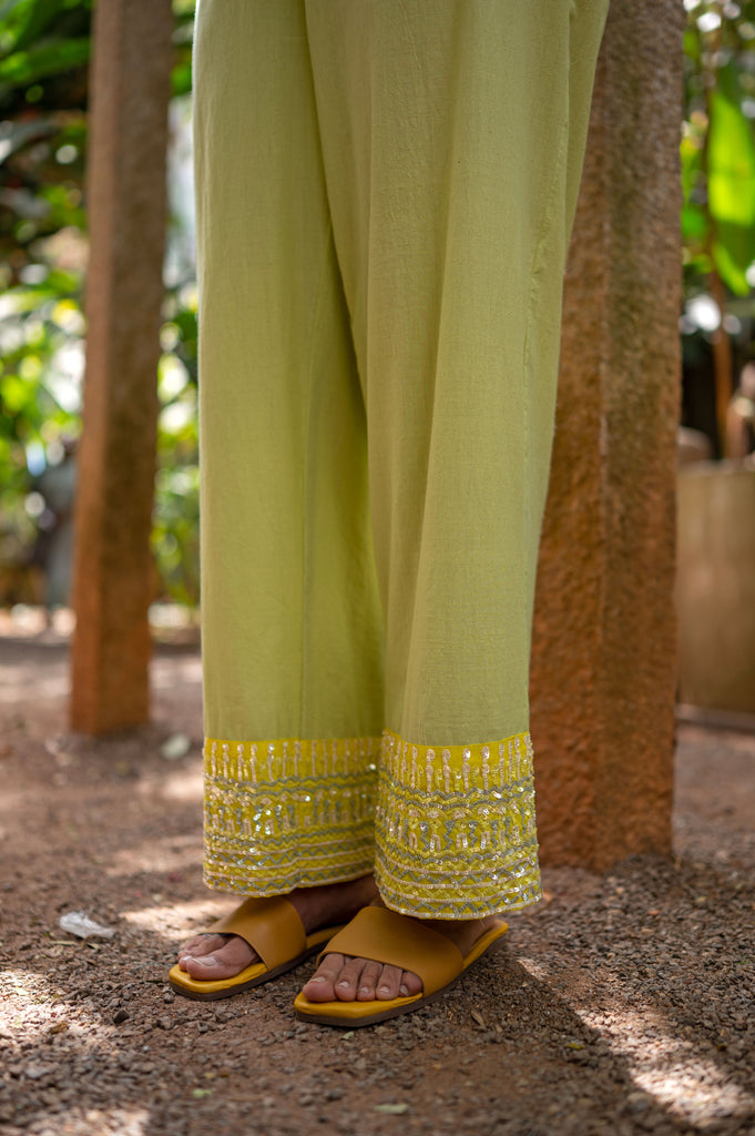Cotton parallel pants with hand embroidered sequences – Latha Puttanna Online Store