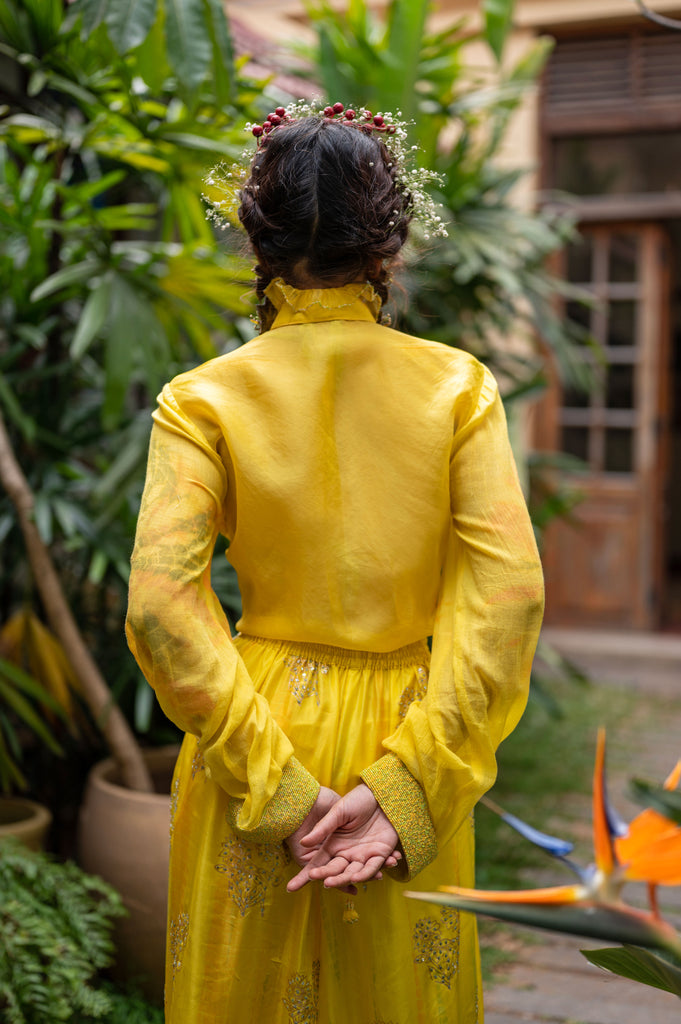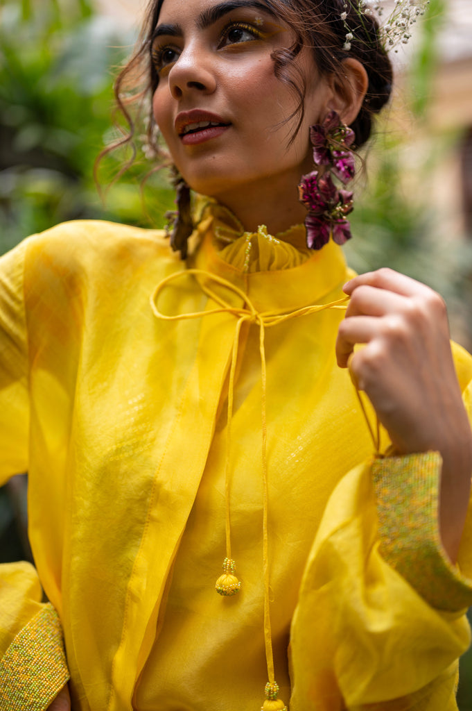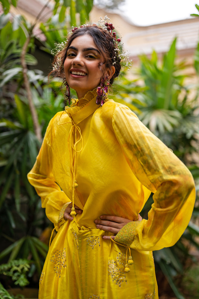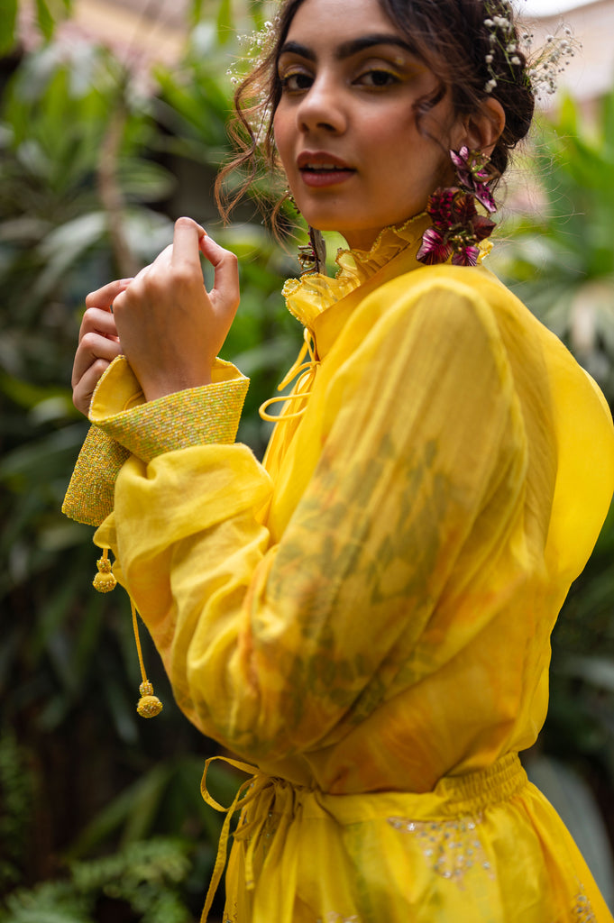 Organza ruffle collar shirt with cotton sleeves and hand embroidered b – Latha Puttanna Online Store