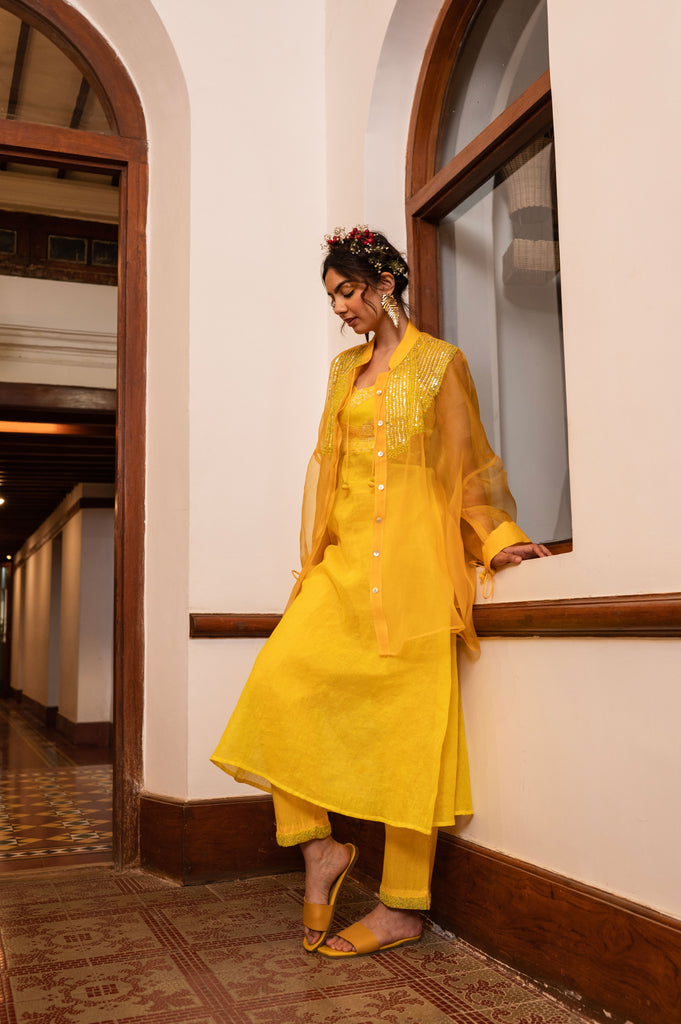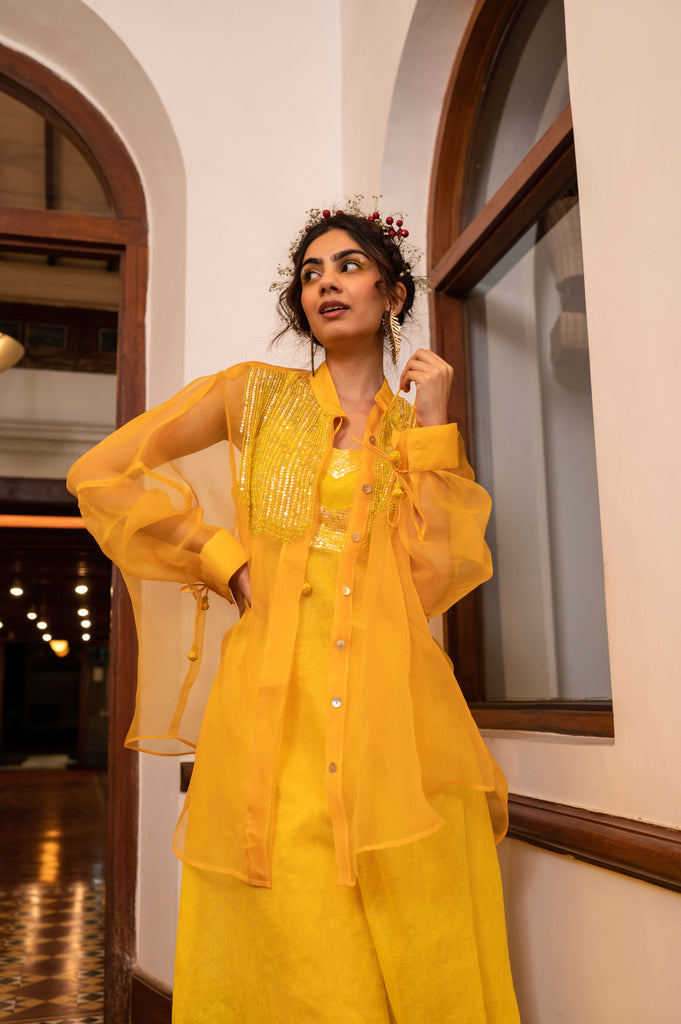 Gearing up for summer showers? Layer up in style with this stylish, luxurious, and comfy organza shirt in orange. Thanks to its relaxed silhouette, hand embroidery on the yoke, and vibrant color, this shirt is the perfect outerwear for warmer months with unexpected spells of rain!