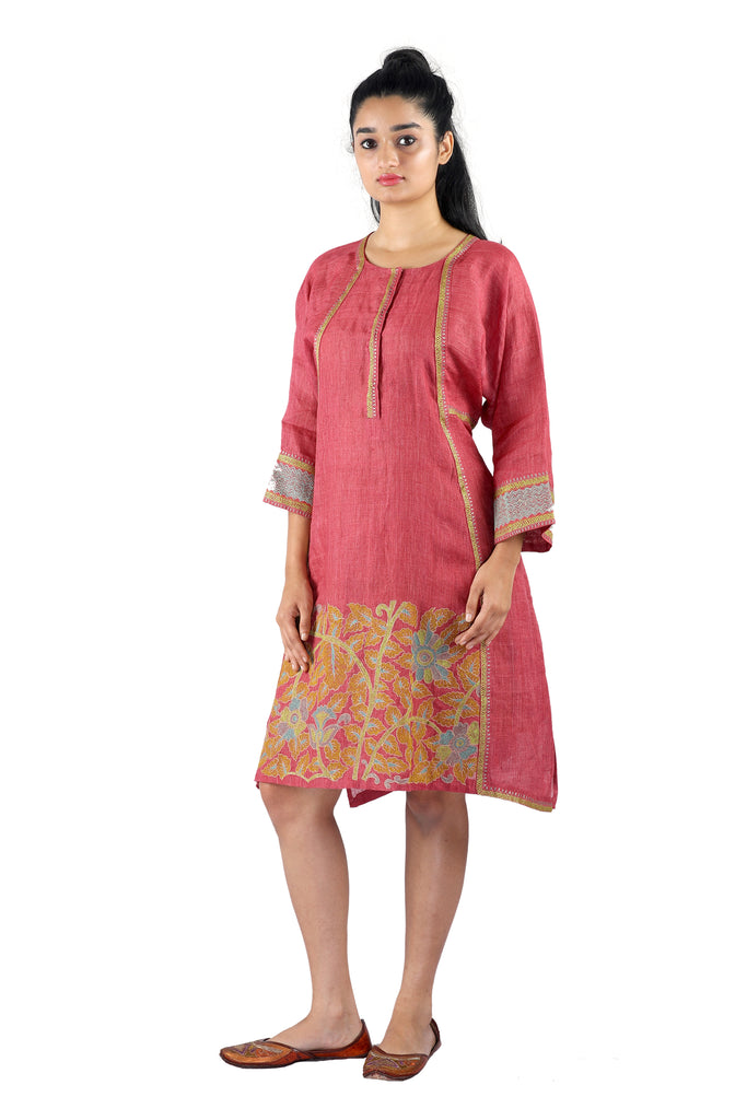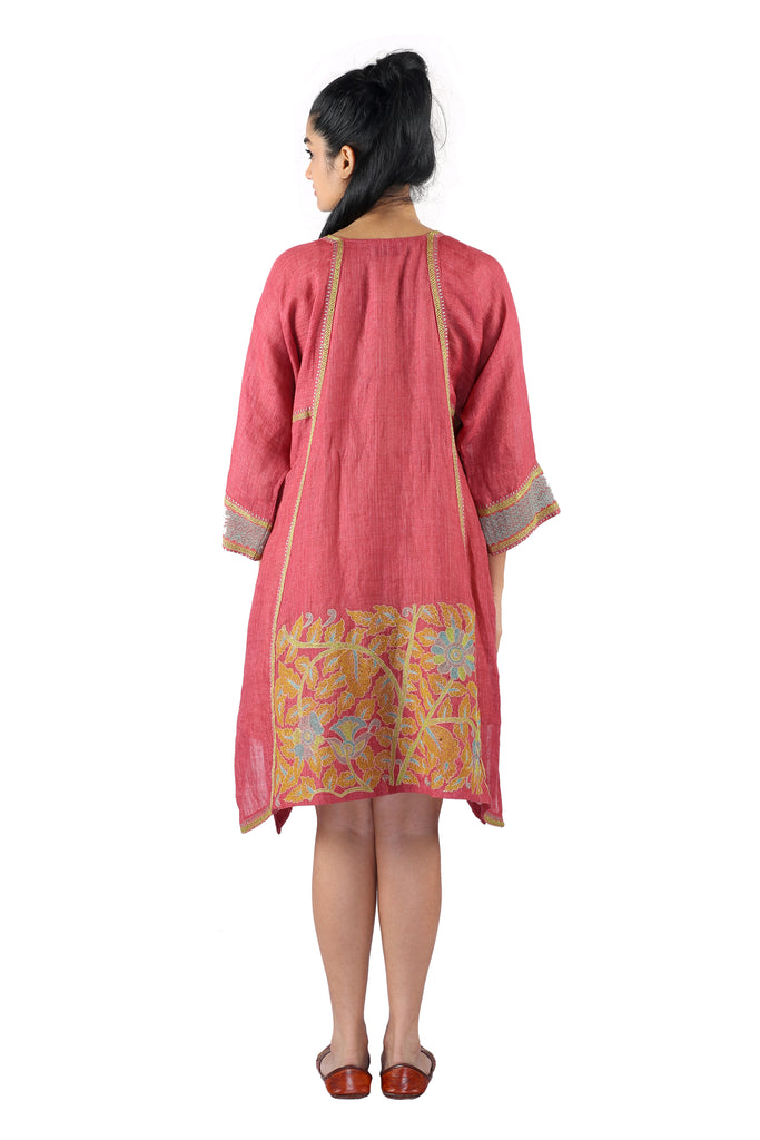 Look strikingly angelic in this ultra-chic dress crafted from the finest organic hand-woven linen and finished with gorgeous detailing in thread embroidery – a true vision in pink, we say!