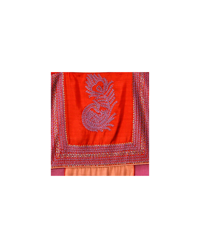 Dupatta : Material - Organza Silk, Colour - Pink, Embroidery - Silk temples.
