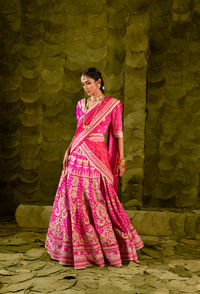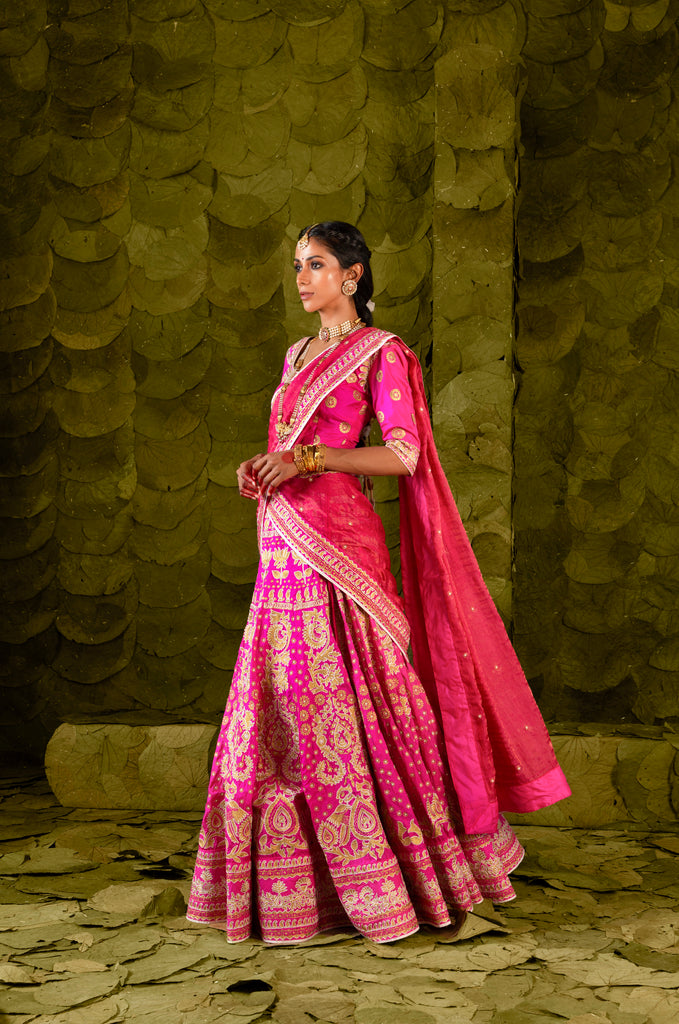 Heṇṇu (ಹೆಣ್ಣು) Lehenga in Shocking Pink