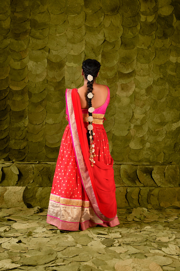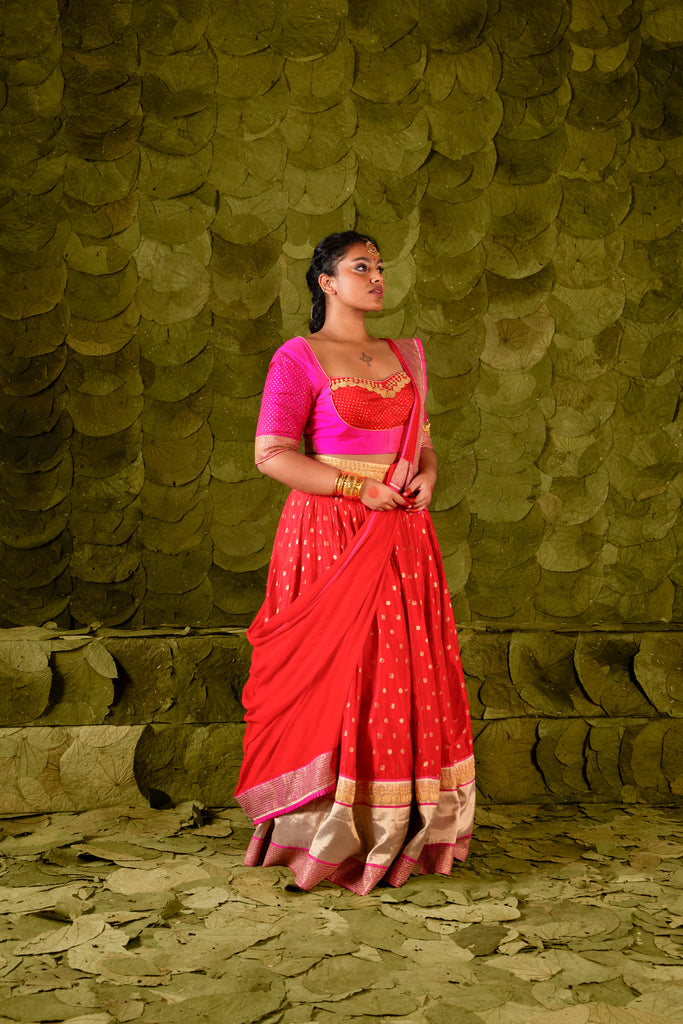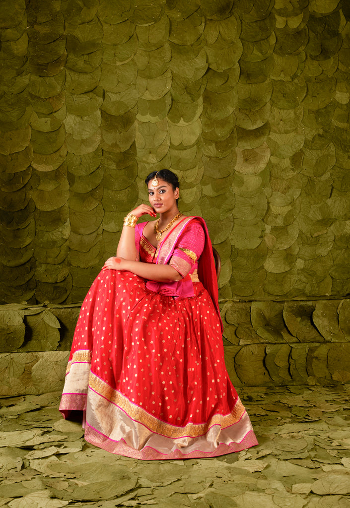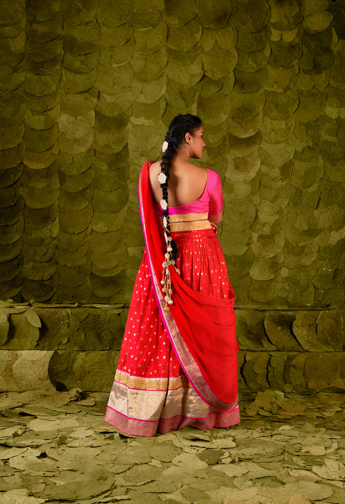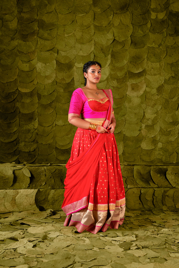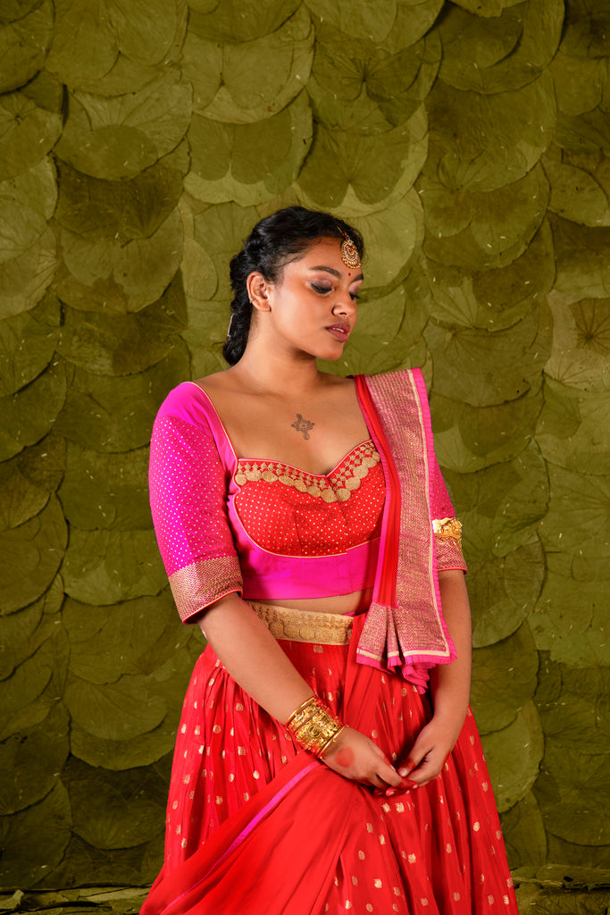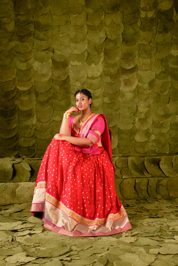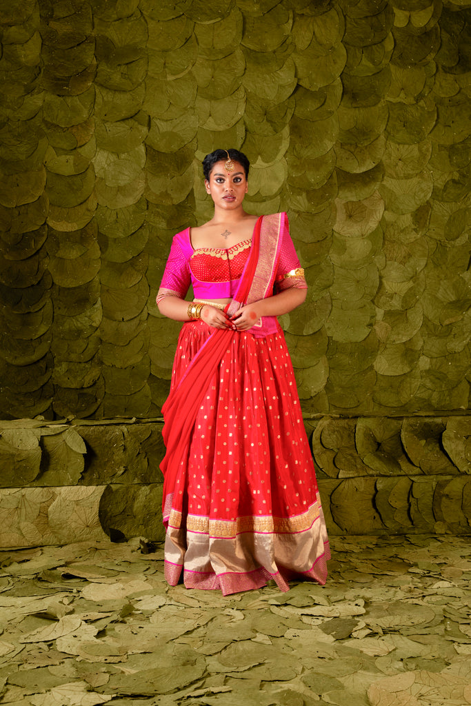 Nādini (ನಾದಿನಿ) Lehenga in Shocking pink and Crimson Red