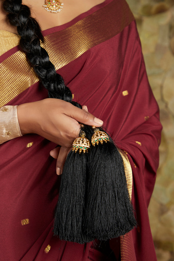 Disclaimer: The Sambandha collection 'Tamboola Series' features intricately woven sarees in pure gold jari, that is a collaboration between Latha Puttanna, who has garnered a reputation over the last 32 years for her extraordinary design expertise and Chamundi Silks, a prestigious silk manufacturing institution celebrated for maintaining a flawless quality standard for 75 years.