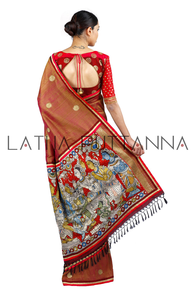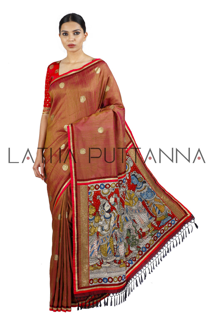 Chola – Heritage Rust Raw Silk Saree – Latha Puttanna Online Store