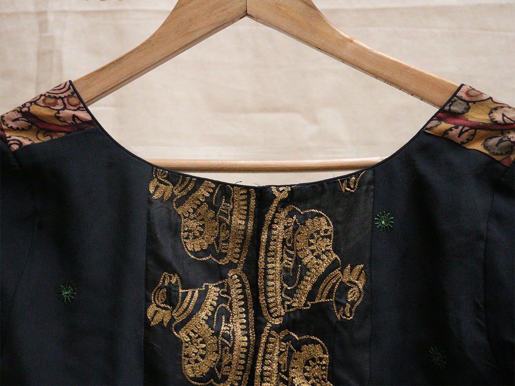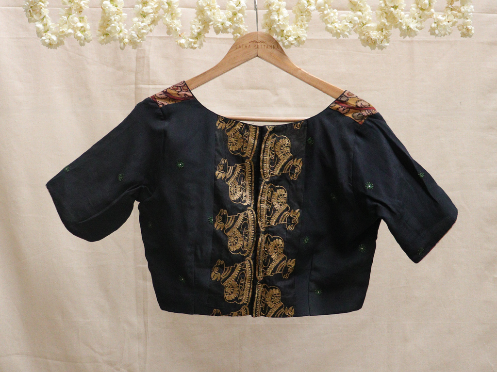Black Kalamkari Nandi blouse
