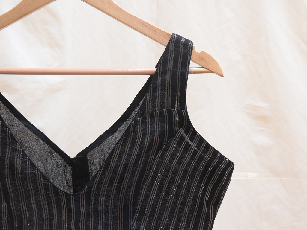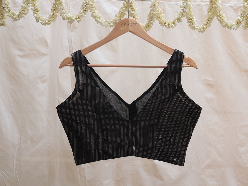 Black, organza, woven silver jari blouse