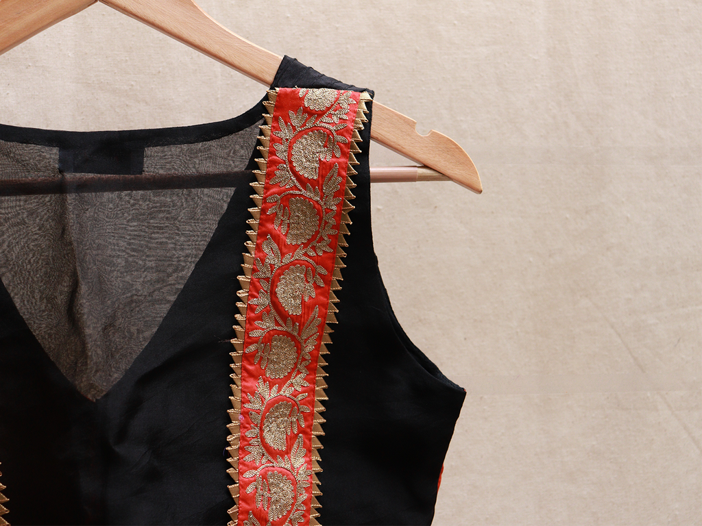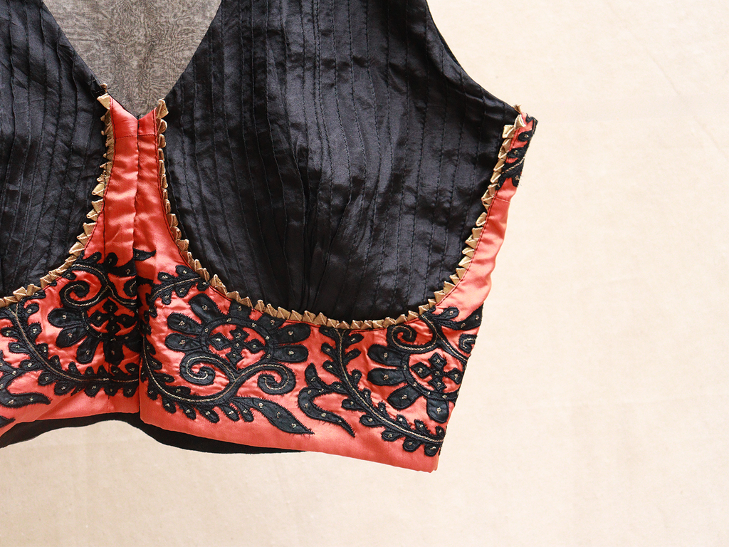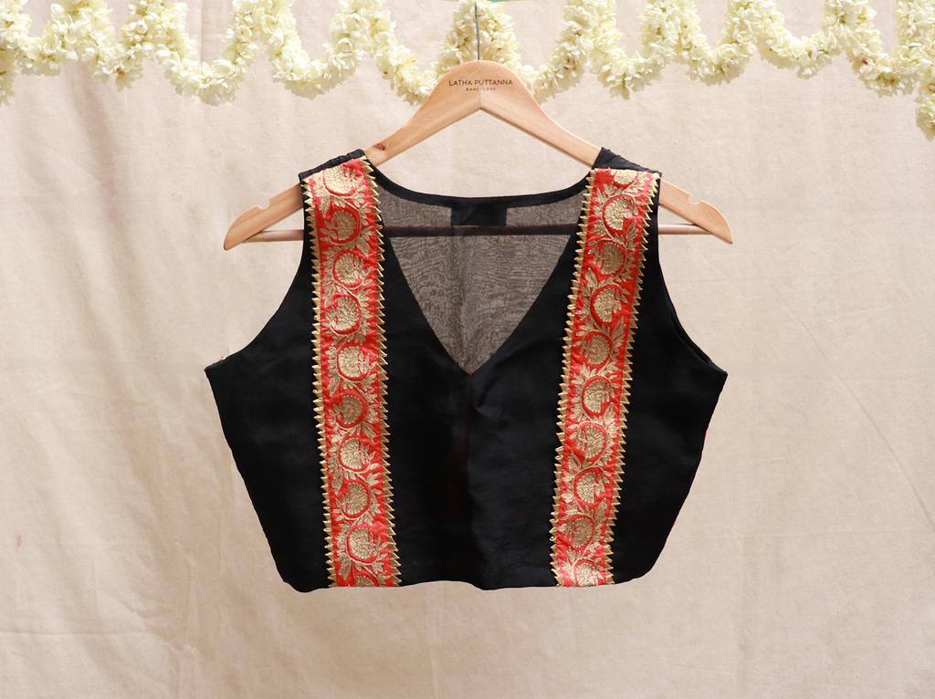 Black, silk, Applique blouse – Latha Puttanna Online Store