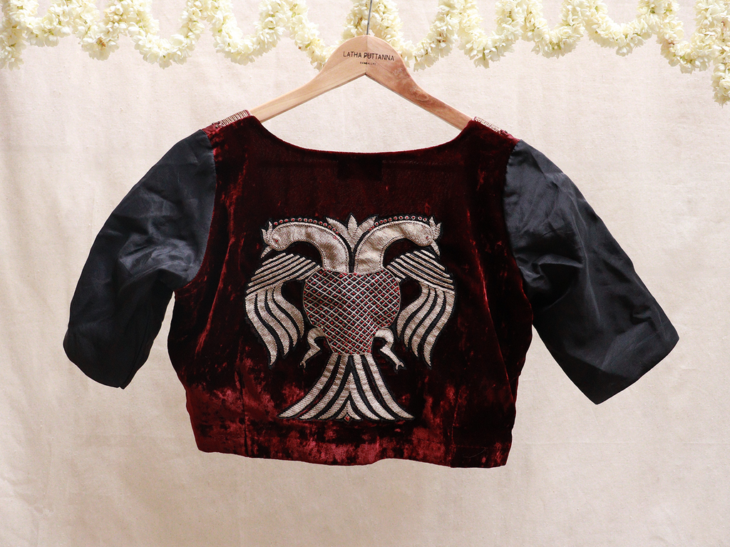 Black velvet gandaberunda blouse – Latha Puttanna Online Store
