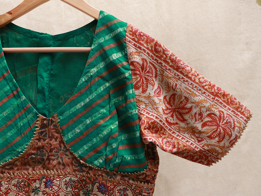 Front Detail - Embroidery, mirror work, Batik, Kalamkari and gota