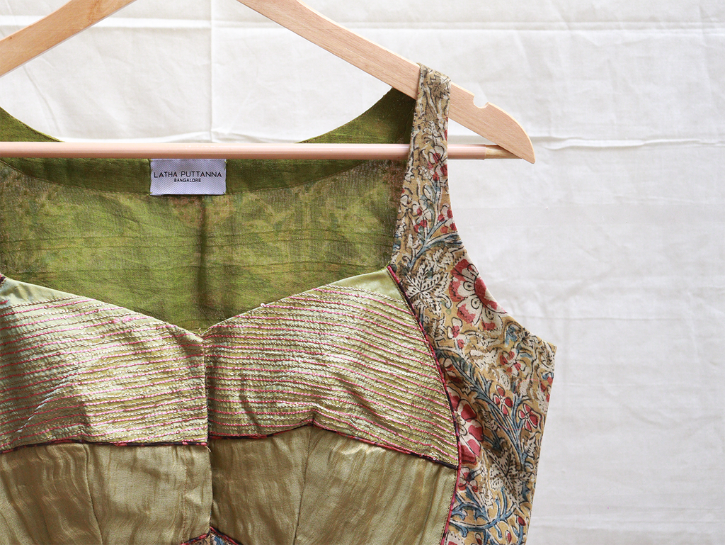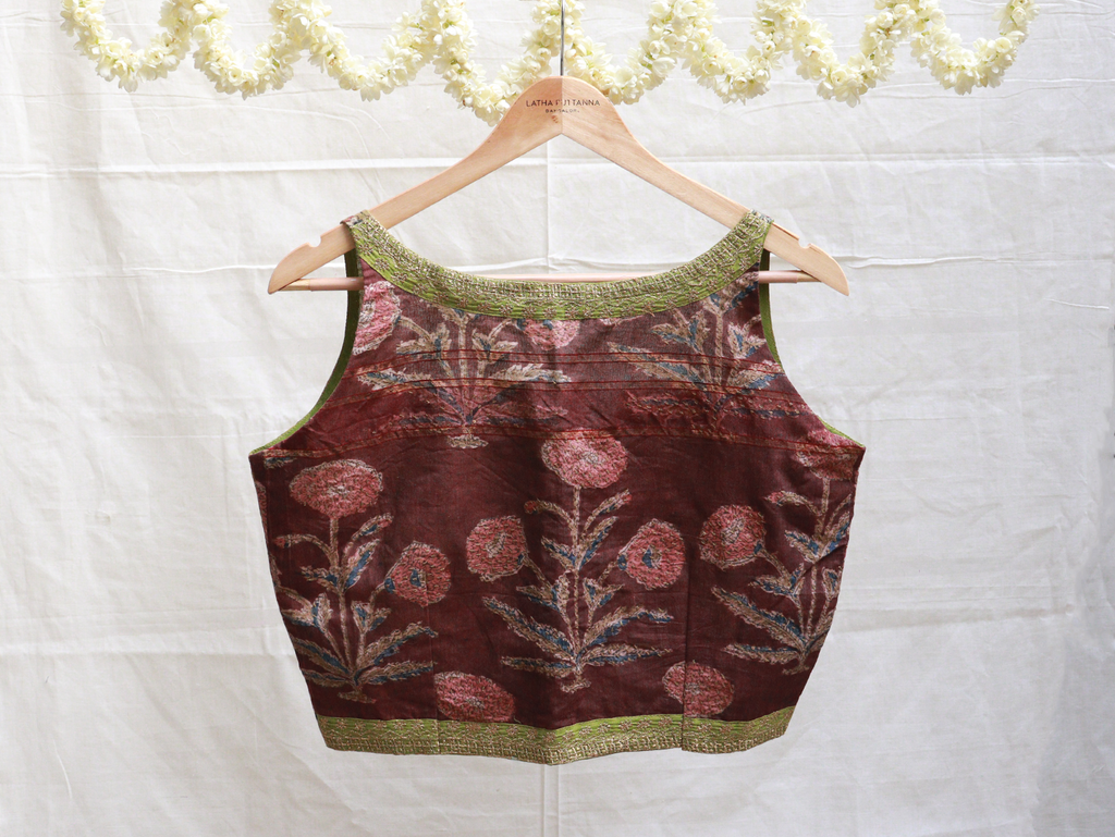 Three colour, Karnataka silk, cotton, Kalamkari blouse – Latha Puttanna Online Store